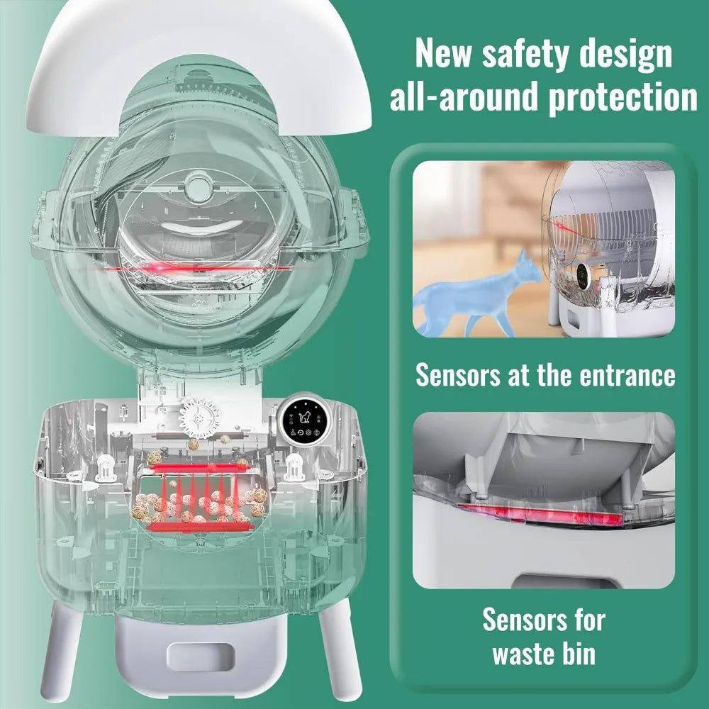 The self-cleaning cat litter box is designed with your cat's safety in mind. Equipped with sensors that detect your cat's presence and a delay mechanism that prevents the cleaning cycle from starting while your cat is inside, you can rest assured that your feline companion is safe and secure.