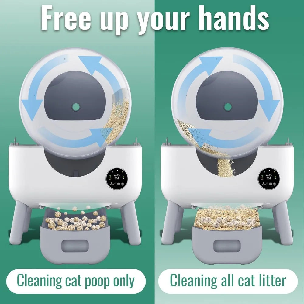 Our automatic cat litter box self cleaning is designed with senior citizens in mind, allowing you to keep your hands free. This innovative litter box automatically cleans itself, reducing the need for bending and making pet care easier.