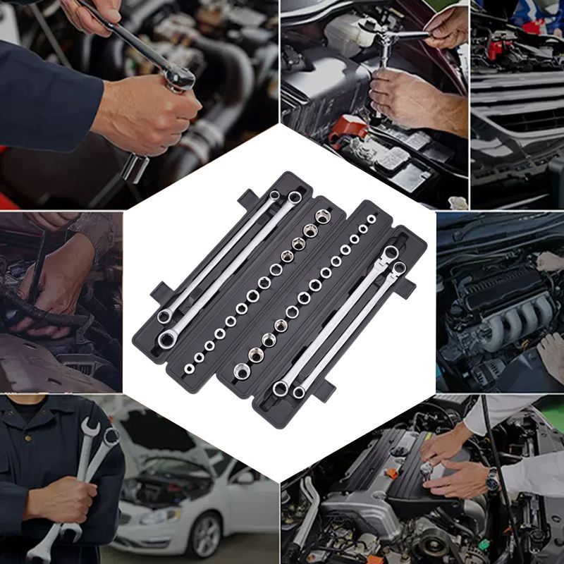 Fast, agile, and with extreme reach, the 15pcs Ratchet Wrench Kit is a great helper in family life and work.