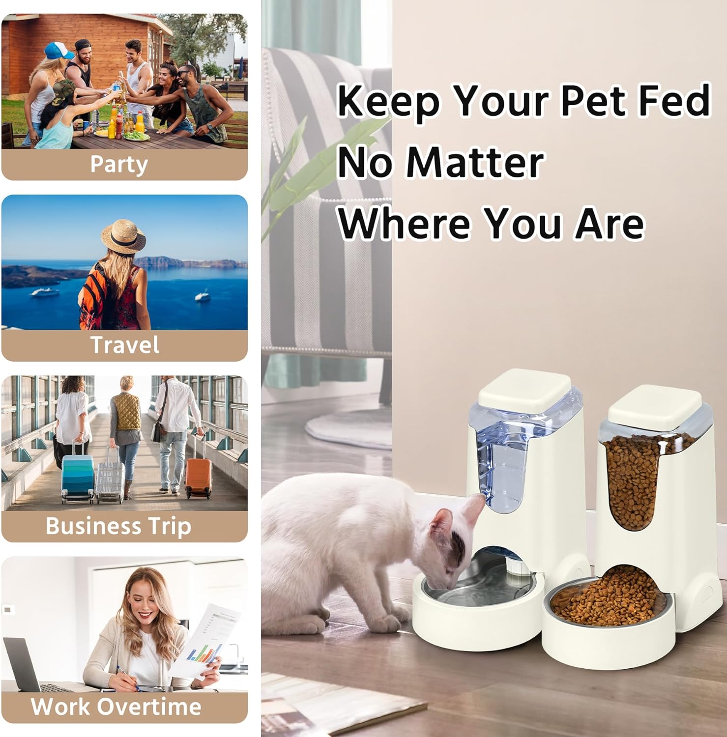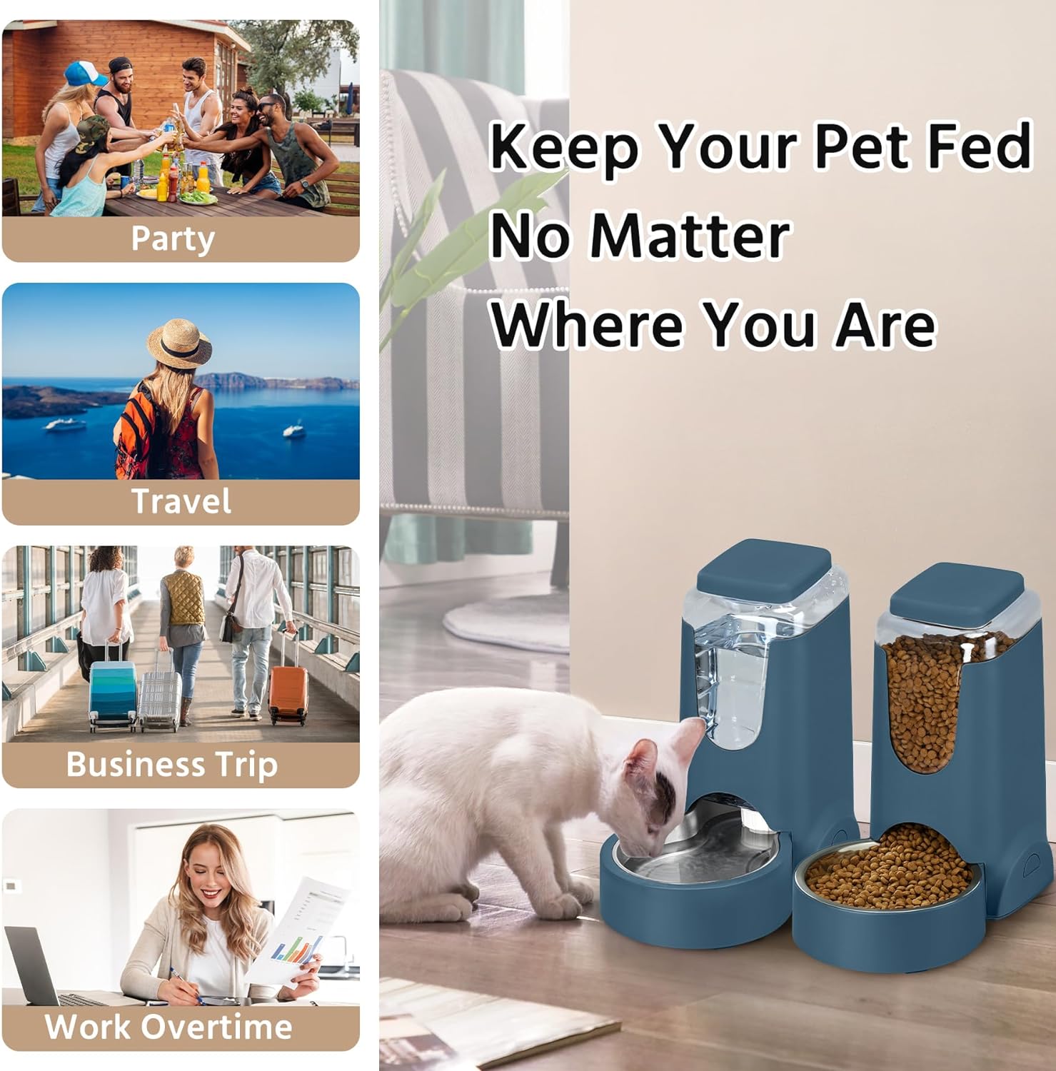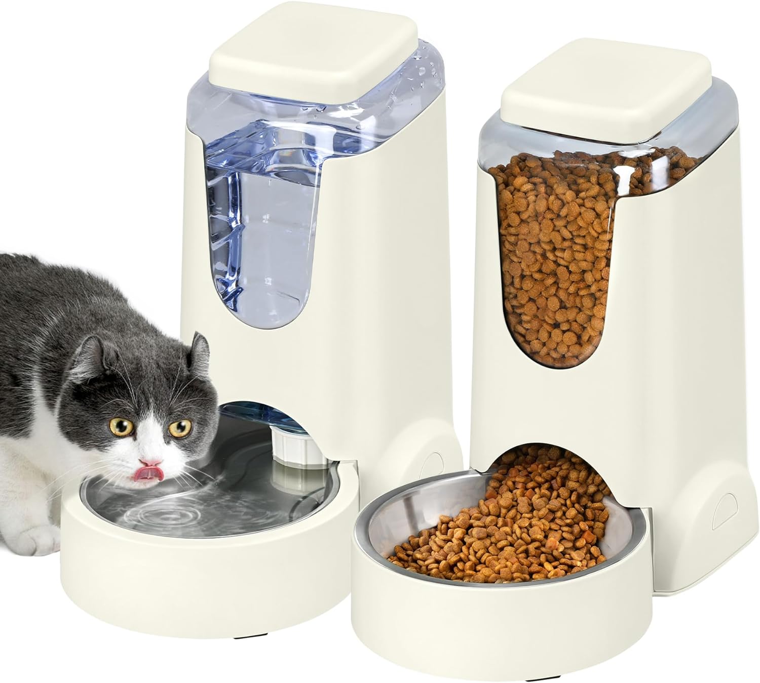 2-Pack Automatic Cat Feeder & Water Dispenser Set - Stainless Steel, Gravity-Fed for Small to Medium Pets