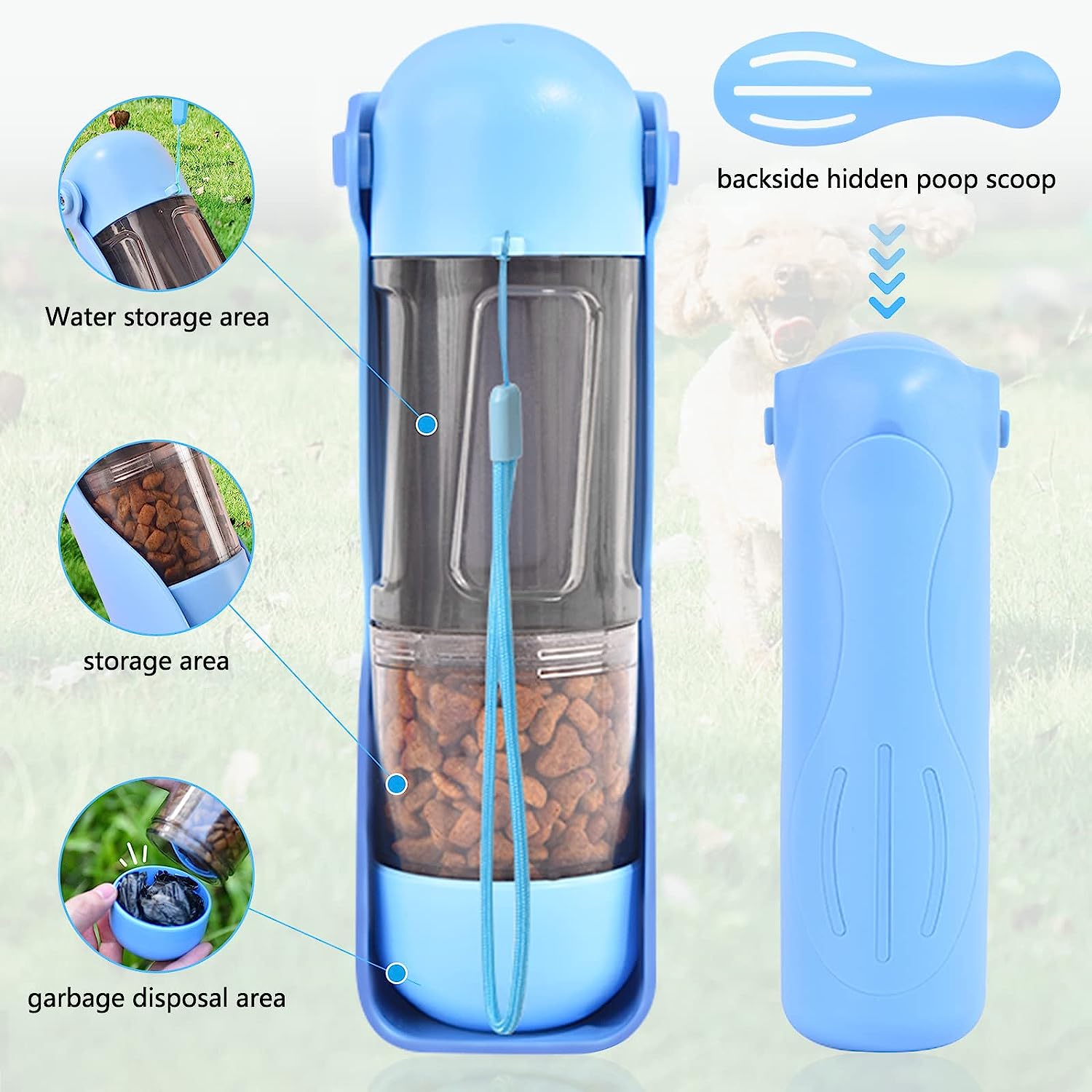 Portable 3-in-1 Dog Water Bottle Food Dispenser and Toilet Bag Storage