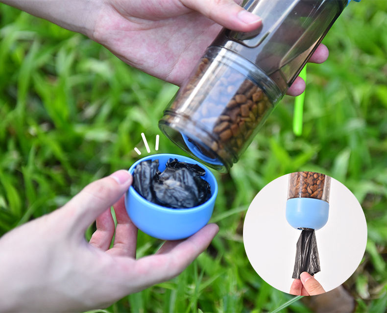 Simplify Pet Parenting with a Portable 3-in-1 Dog Water Bottle Food Dispenser and Toilet Bag Storage