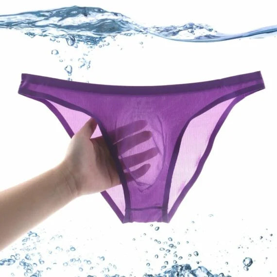 3D Seamless Pouch – Men’s Striped Ultra Thin Ice Silk Seamless Briefs (5 Pack)