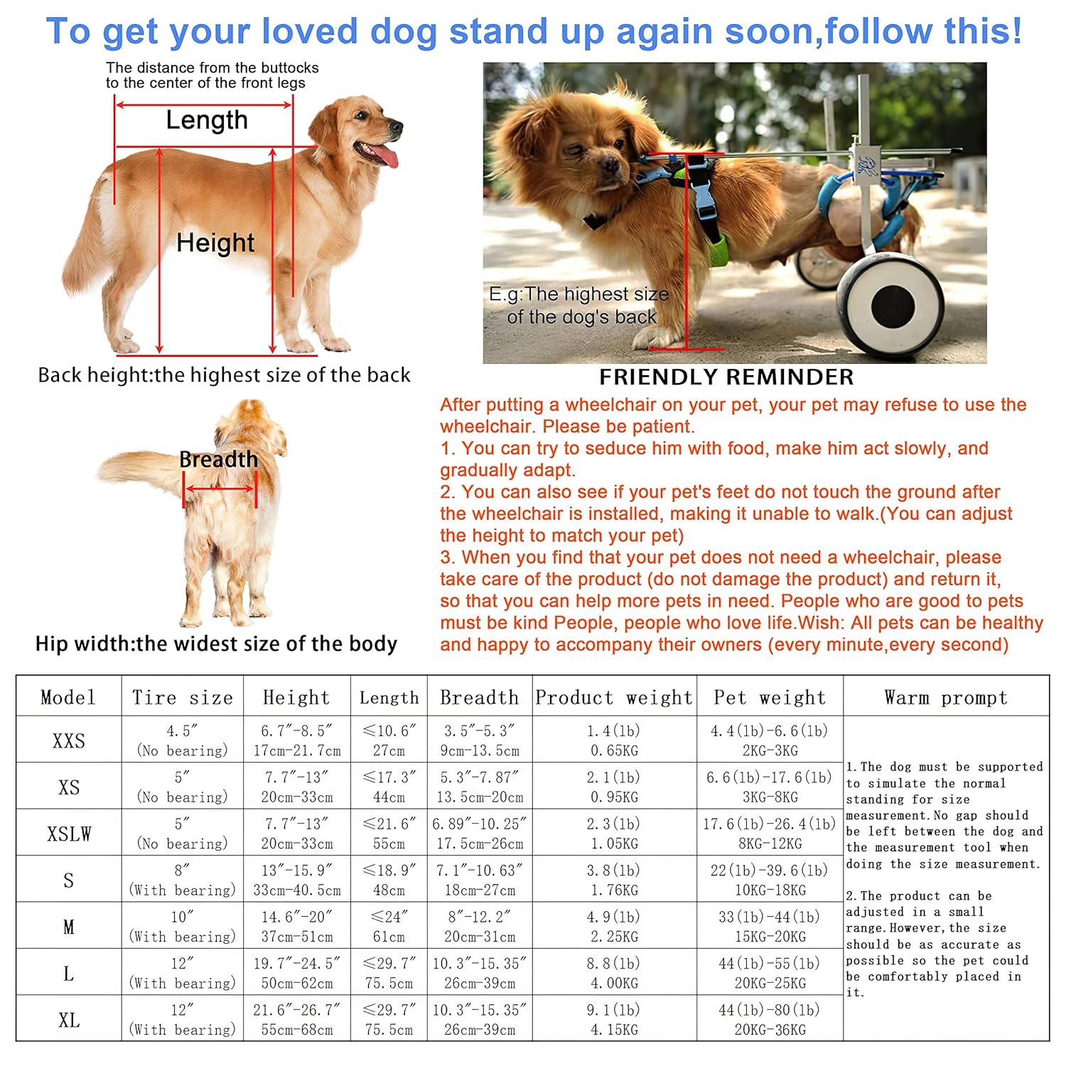 Note: Two-wheel ADJUSTABLE WHEELCHAIRS are only suitable for pets with disabled hind legs but normal front legs. If your dog is seriously injured, we recommend that you go to the veterinary hospital for help as soon as possible. I wish your pet a speedy recovery!