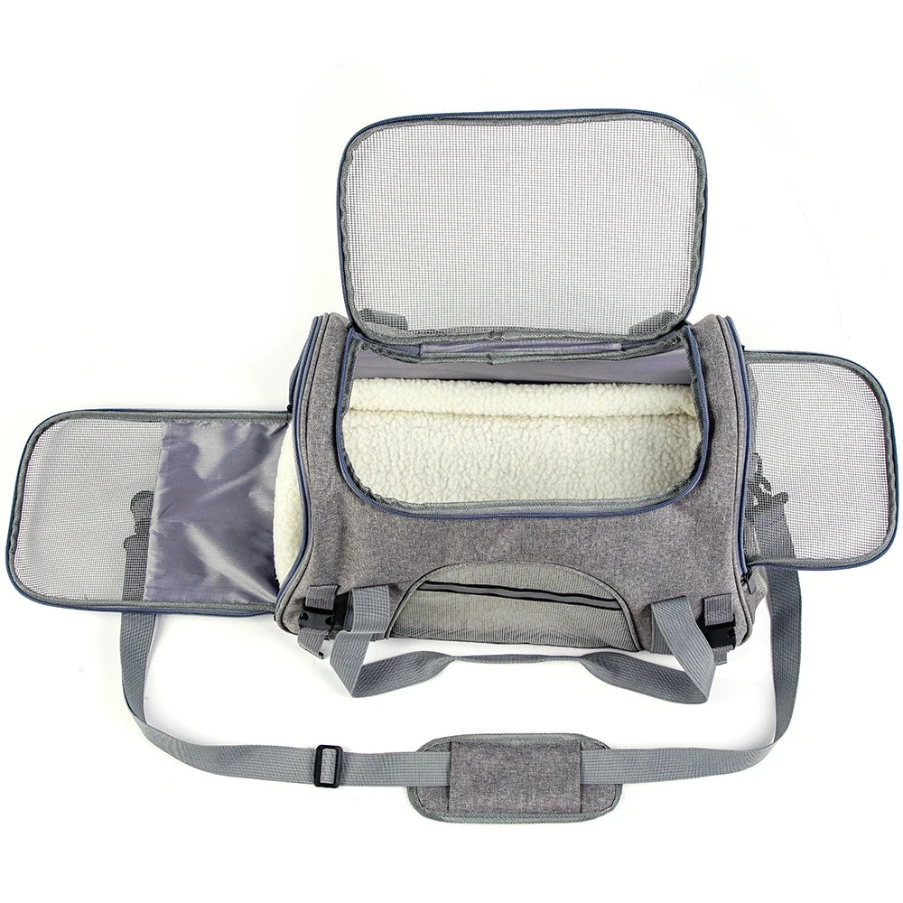1. Equipped with mesh on all four sides and entrances on three sides, ensuring effective ventilation and excellent visibility. This allows you to maintain visual contact with your pet throughout the flight.
