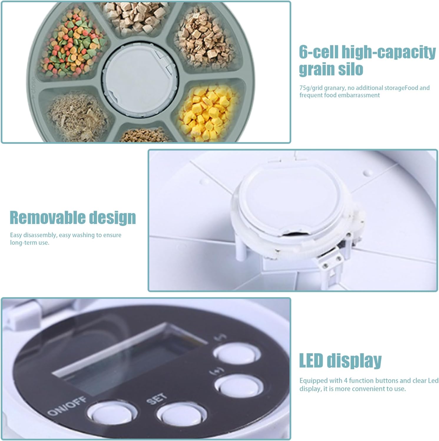 - Additional Features: Musical mealtime, Low battery indicator, Easy-to-use and maintain, Programmable timer for scheduled meals