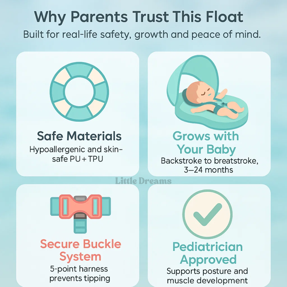 Extra-Wide & Stable Design – 10% wider and longer than standard infant pool floats, for unmatched stability.
