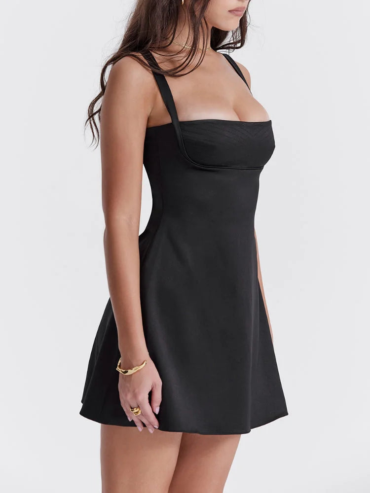 Backless Charmaine Romantic Square Neck A-line Mini Dress