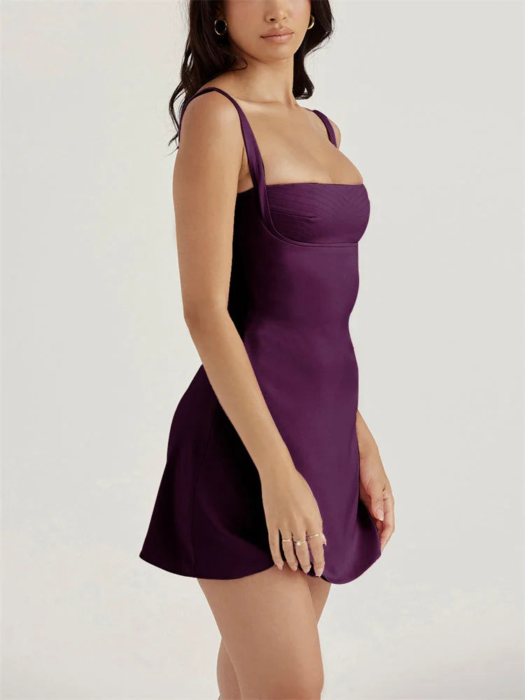 Feminine and elegant, our mini dress has a romantic feel. It's cut from our lustrous satin in the prettiest color hue that drapes effortlessly over your curves. We love the floaty feel to this as it flares gently at the hem.