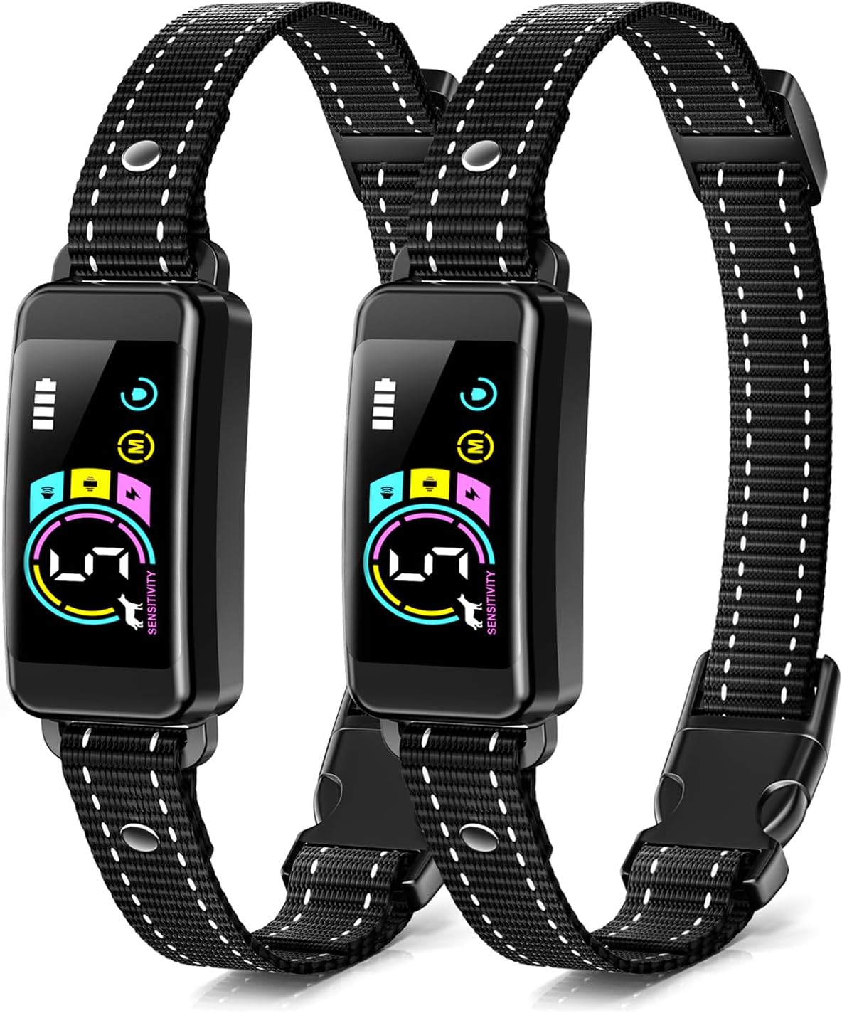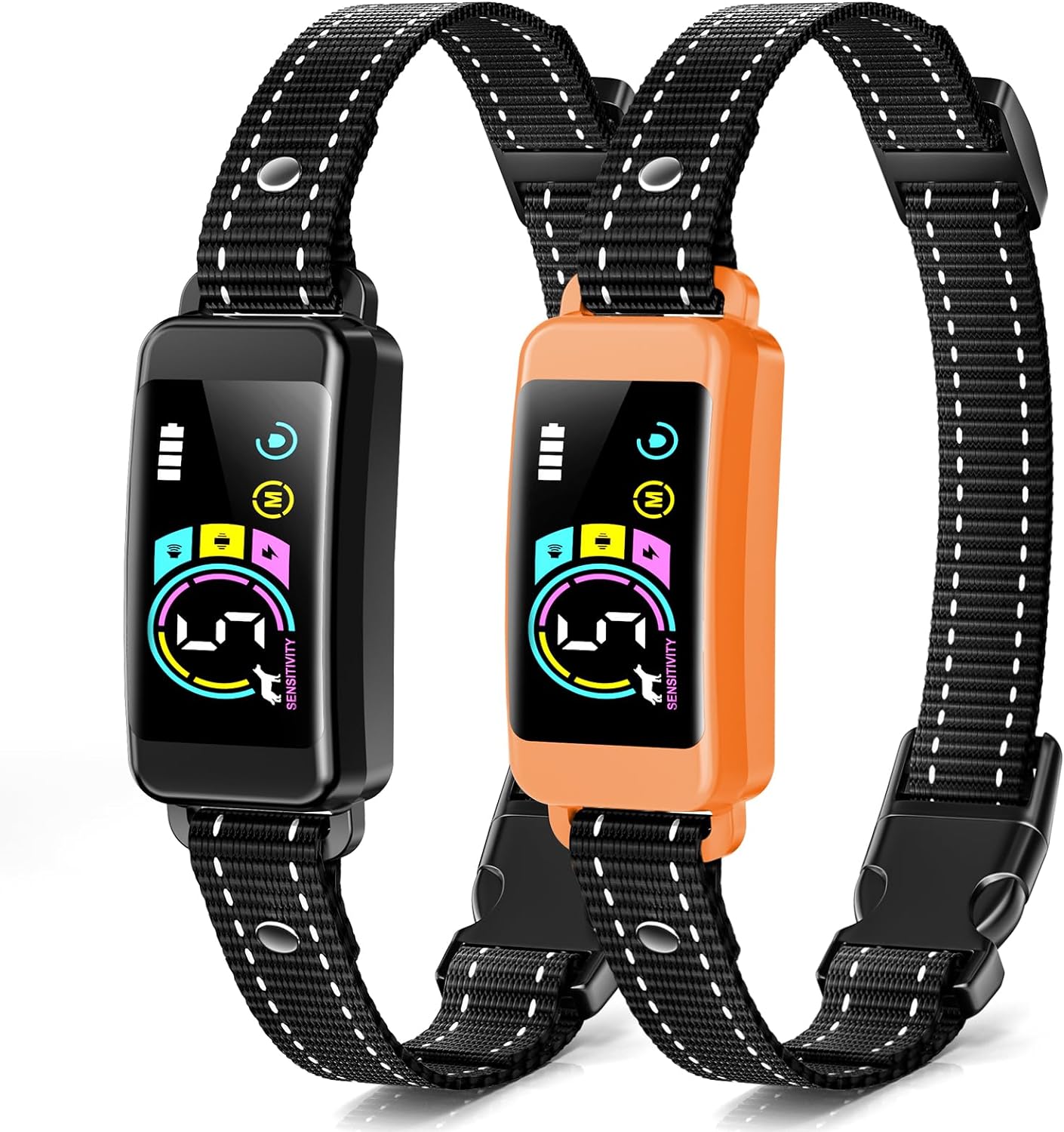 Bark Collar, 2 Pack Dog Bark Collar for Large Medium Small Dogs, Rechargeable Training Collar with Beep Vibration Shock Collar with 5 Adjustable Sensitivity, Anti Barking Device for Dogs