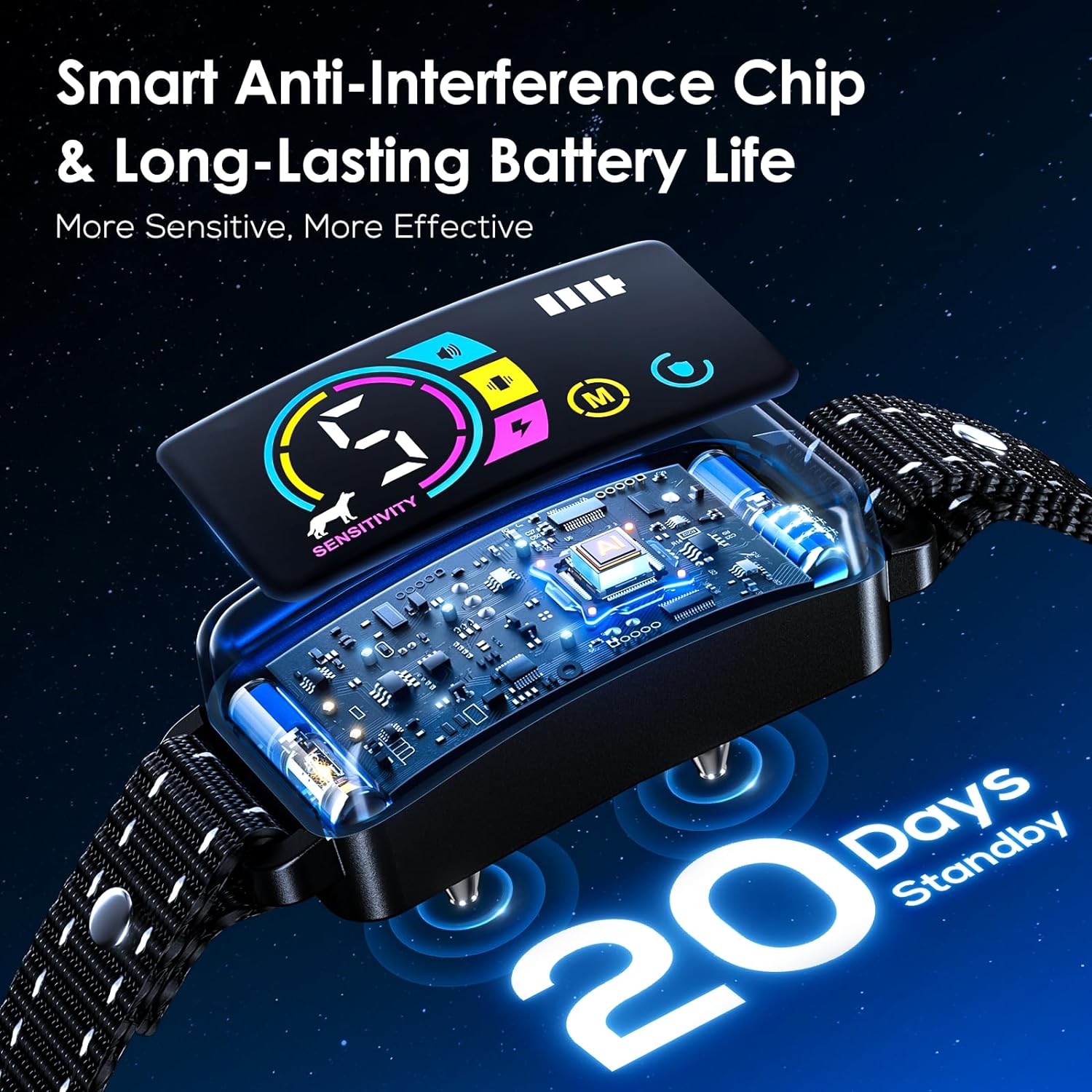 With an advanced AI intelligent dog bark recognition chip and motion detection technology, the barking collar activates only when movement and barking are detected, eliminating outside noise or false triggers from neighboring pets. In addition, the anti barking device is IP67 waterproof, making it resistant to rain, snow, and mud splashes.