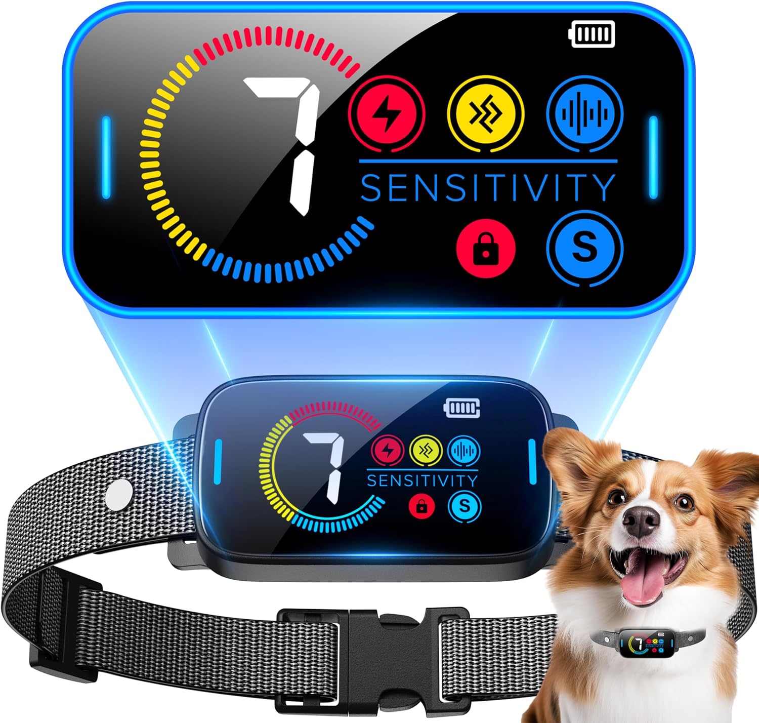 Smart Bark Collar for Large & Medium Dogs - Rechargeable, Ultrasonic Beep Vibration Shock, Adjustable Sensitivity