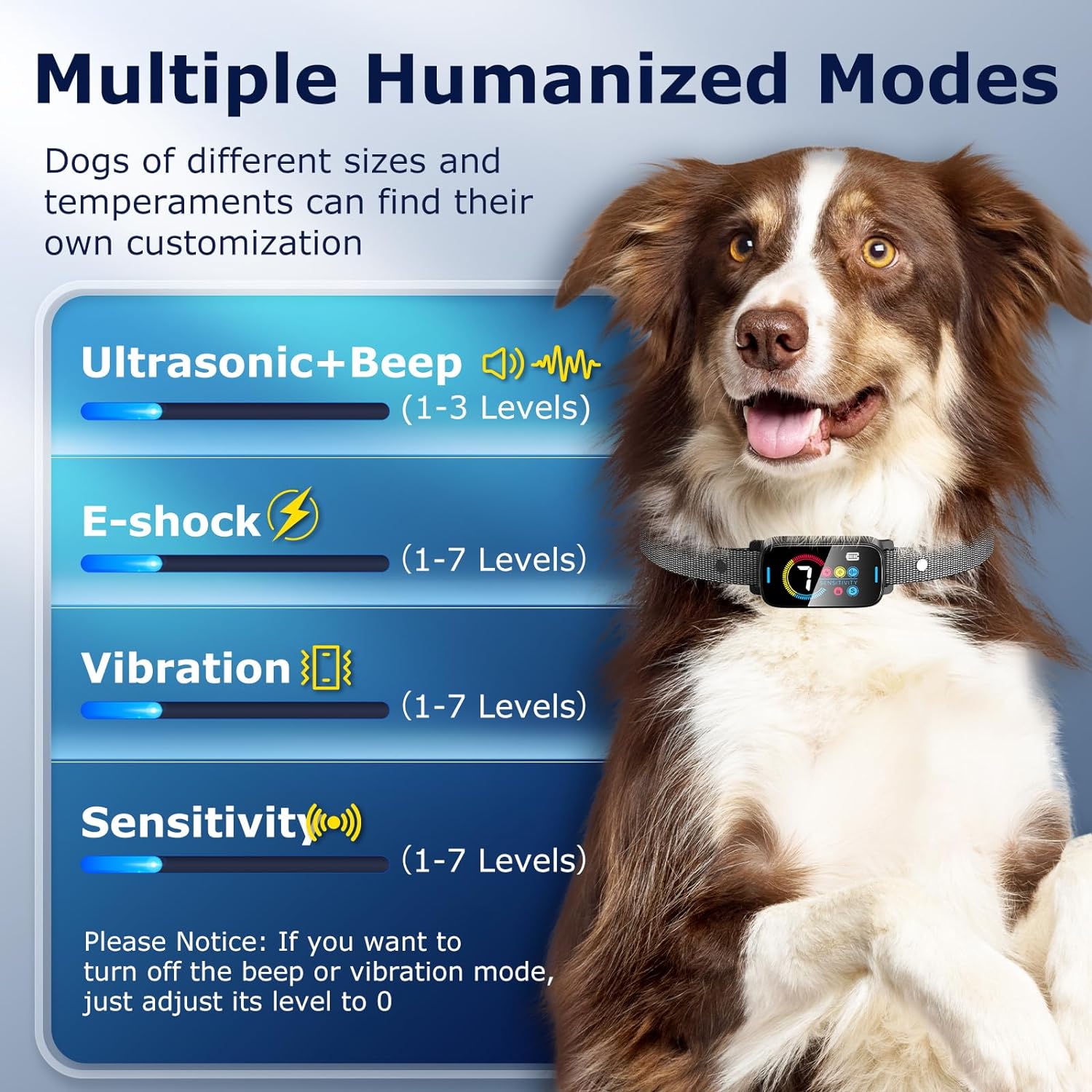 Doglory Dog bark collar has multiple training Modes, 7 adjustable sensitivity level and protection mode.