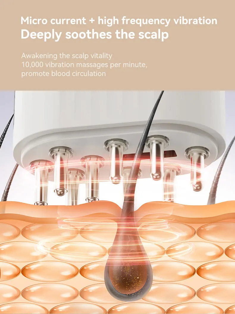 ✨ Revolutionary Hair Growth Technology: Combines microcurrent, high-frequency vibration, and red light therapy (625-655 nm) to stimulate hair follicles and restore optimal scalp health.