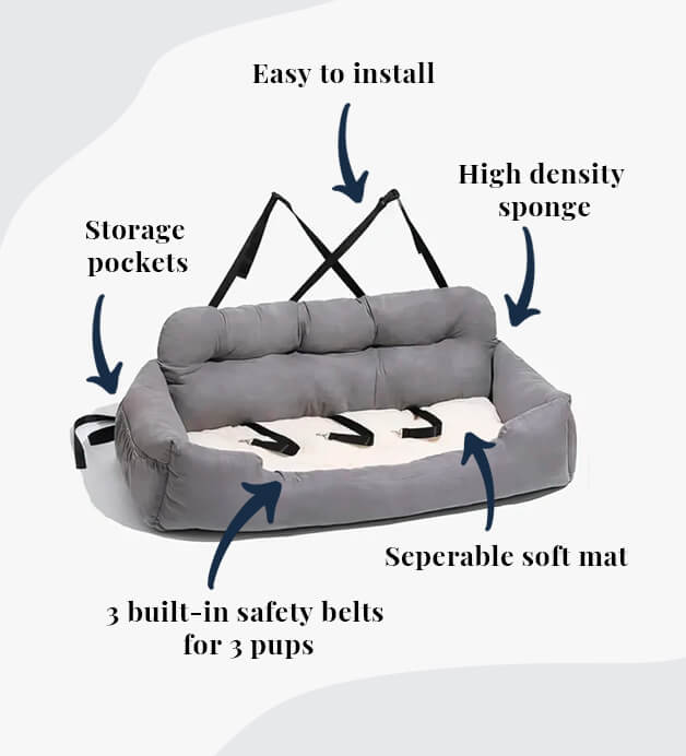 The doglory Dog Car Seat Bed has three harnesses that can be used to secure your dog using a harness, into the car seat bed and prevent injury from jumping out whilst driving. Three adjustable clips make the seat bed more stable by attaching to the headrests.