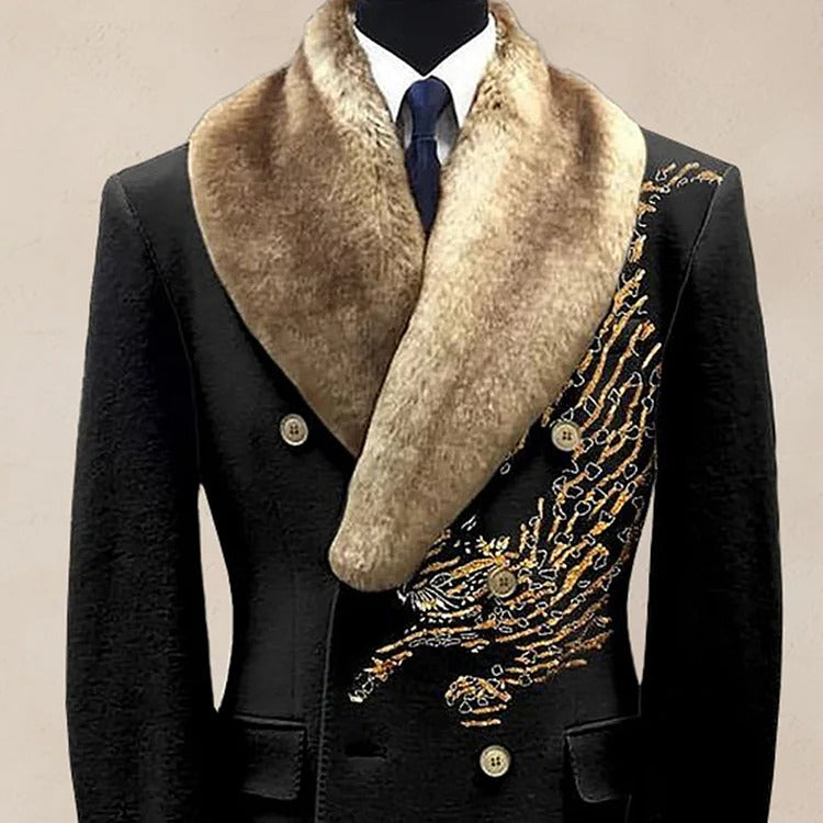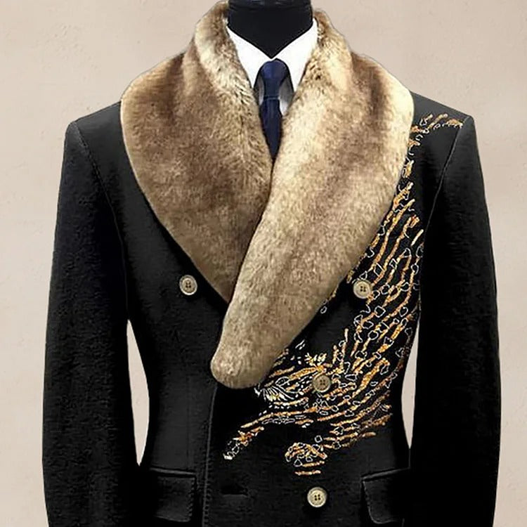 Casual Contrast Binding Button Long Sleeve Windproof Fur Collar Overcoat