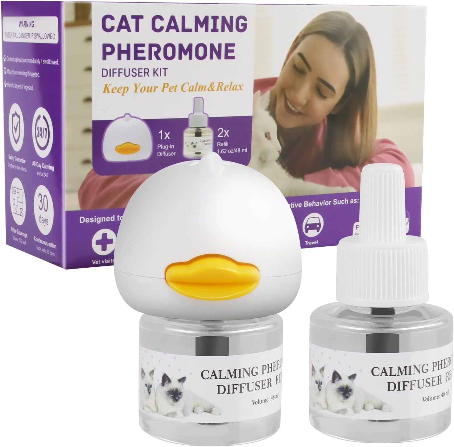 Cat Calming Diffuser 60 Day Starter-Kit Cat Calming Diffuser Effectively Relieve Anxiety Stress Reduce Fighting and Scratching Calm Relaxing 48ml /Bottle Fits All Cats