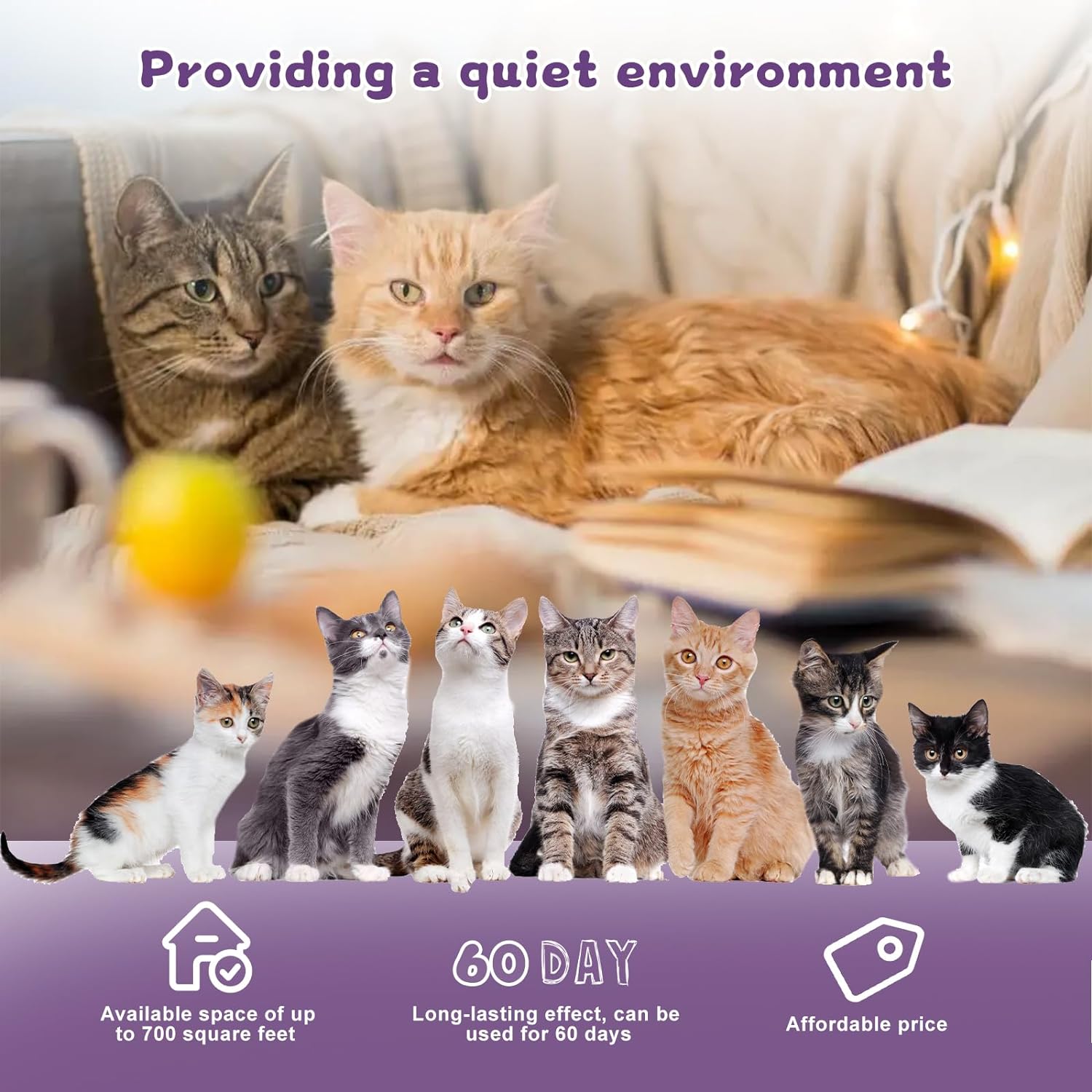 Pheromones for cats Effective for 95% of cats, reducing fighting, scratching, urine marking, hiding and other problem behaviors.