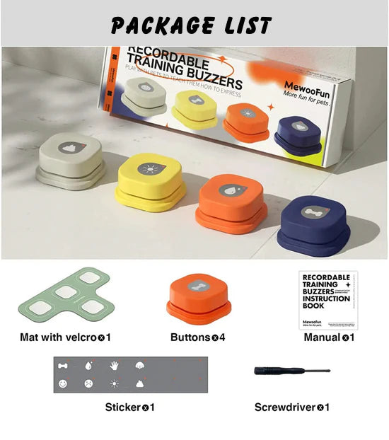 Presenting our revolutionary Talking Buttons with Mat for Dogs and Cats – an exceptional communication aid designed to strengthen the connection between you and your four-legged companion. Enable your pet to communicate effortlessly by recording messages or commands on these buttons. The premium Velcro ensures secure placement, preventing any slipping on floors or mats.