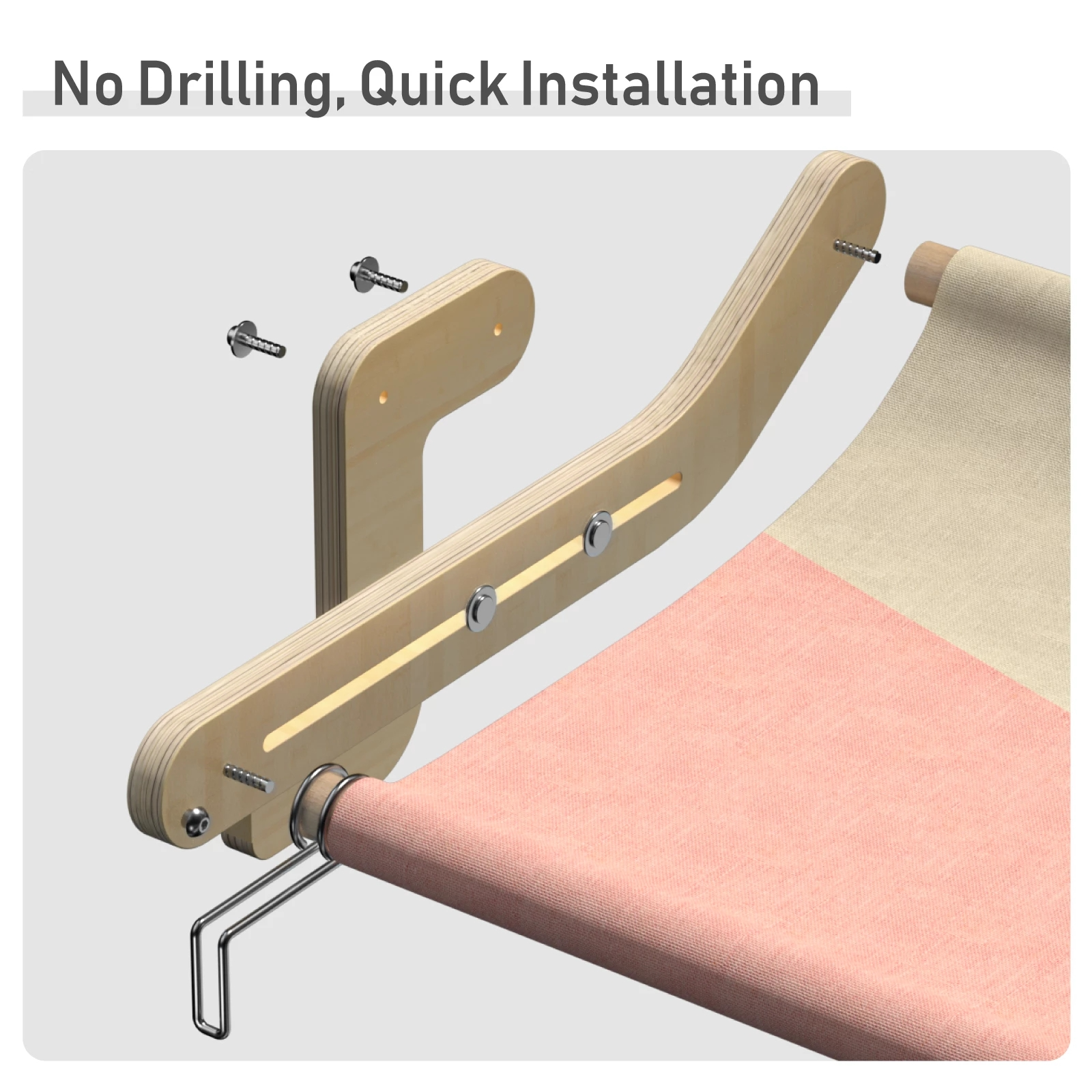 No Drilling, Quick Installation: Our Cat Window Perch eliminates the need for wall drilling, offering a hassle-free installation process. With simple steps and adjustable hooks accommodating various wall thicknesses, installation typically takes just 10 minutes. Additionally, felt gaskets are included between the supporting leg and the wall to protect against damage.