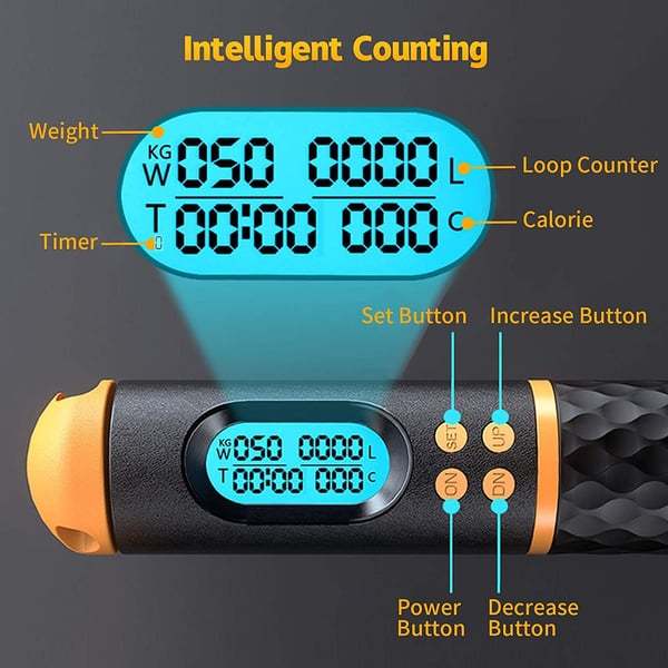 One of the handles is equipped with a backlit LCD screen, the screen shows you the calories burned, jumping times and how long you should train.