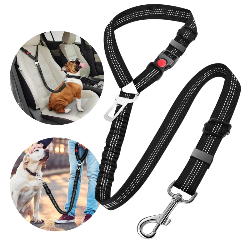 Dog Car Belt with 3-in-1 Design with Built-in Leash