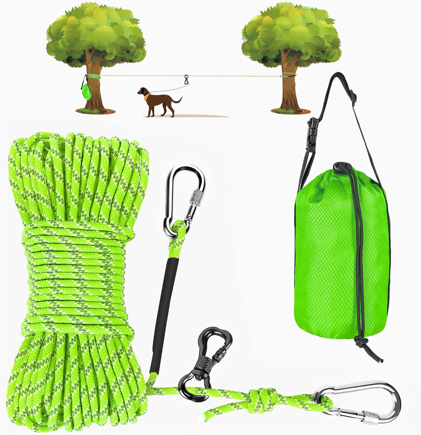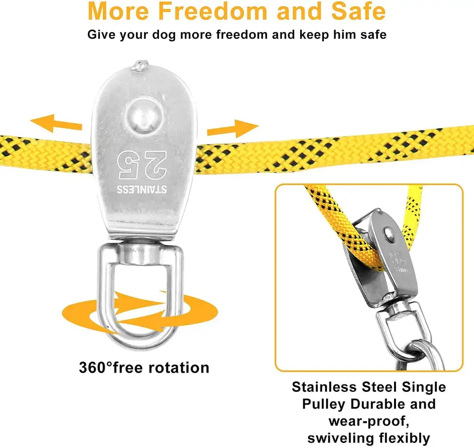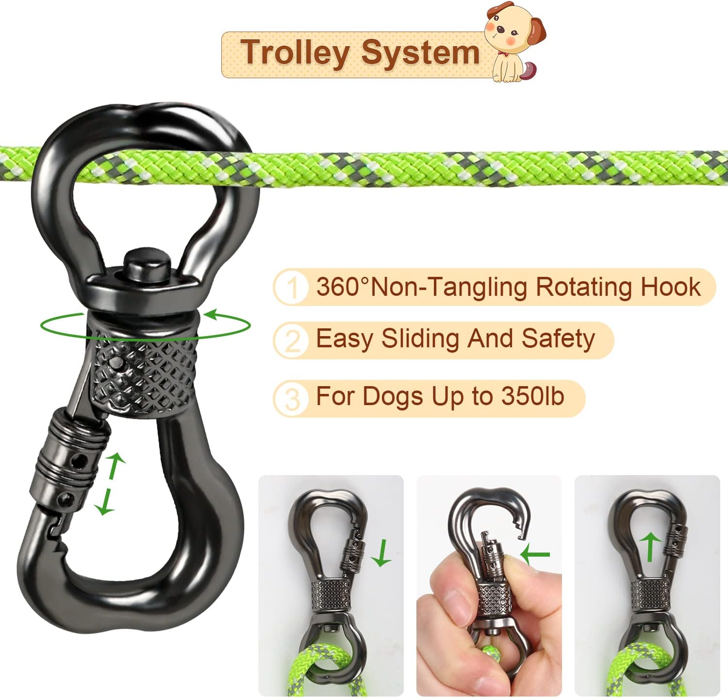Keep Dogs Safe and Free: The 50 feet runner for dog designed for large dogs weighing up to 350lbs, and the dog leads for yard has bright colors and high visibility. Give an easy visual detection on any background:the bush, grass or in the woods. The dog lead cable can reflect light at night or when the light is low, confirming the dog's position and providing safety protection, you can easily find your dog in the distance.