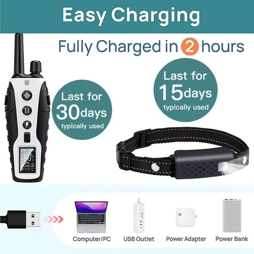 This Dog Training Collar is ideal for dog owners facing challenges in training their furry companions. Whether dealing with excessive barkingdisobedience, or other unwanted behaviors, our shock collar provides a safe and effective solution. The waterproof design allows dogs to play in various environments, making it suitable for both indoor and outdoor use. The extended 3280ft remote range and versatile training modes make it especially useful in scenarios where precise and reliable behavior control is essential. The collar is perfect for dogs of all sizes, ensuring a customized and humane training experience.