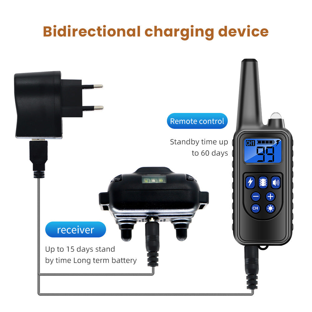 This versatile training collar has impressive features designed to make training a breeze. With an operating range of up to 800 meters, you can maintain control even when your dog is off-leash or at a distance. The collar is made from comfortable rubber to ensure your dog's comfort during wear. Both the remote control and collar have impressive standby times, with the remote lasting up to 60 days and the collar up to 15 days on a single charge. It's a convenient and reliable tool to help you and your dog communicate better.
