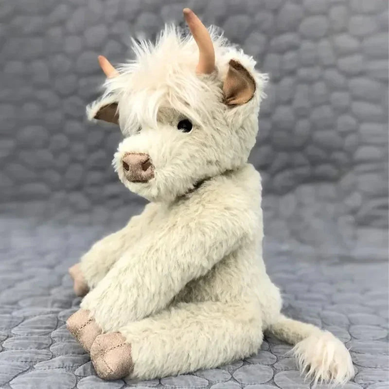 I am so proud to introduce a beautiful White Highland Cow. This cow is created in beautifully soft winter white alpaca, and is completely hand made taking over 45 hours to complete.