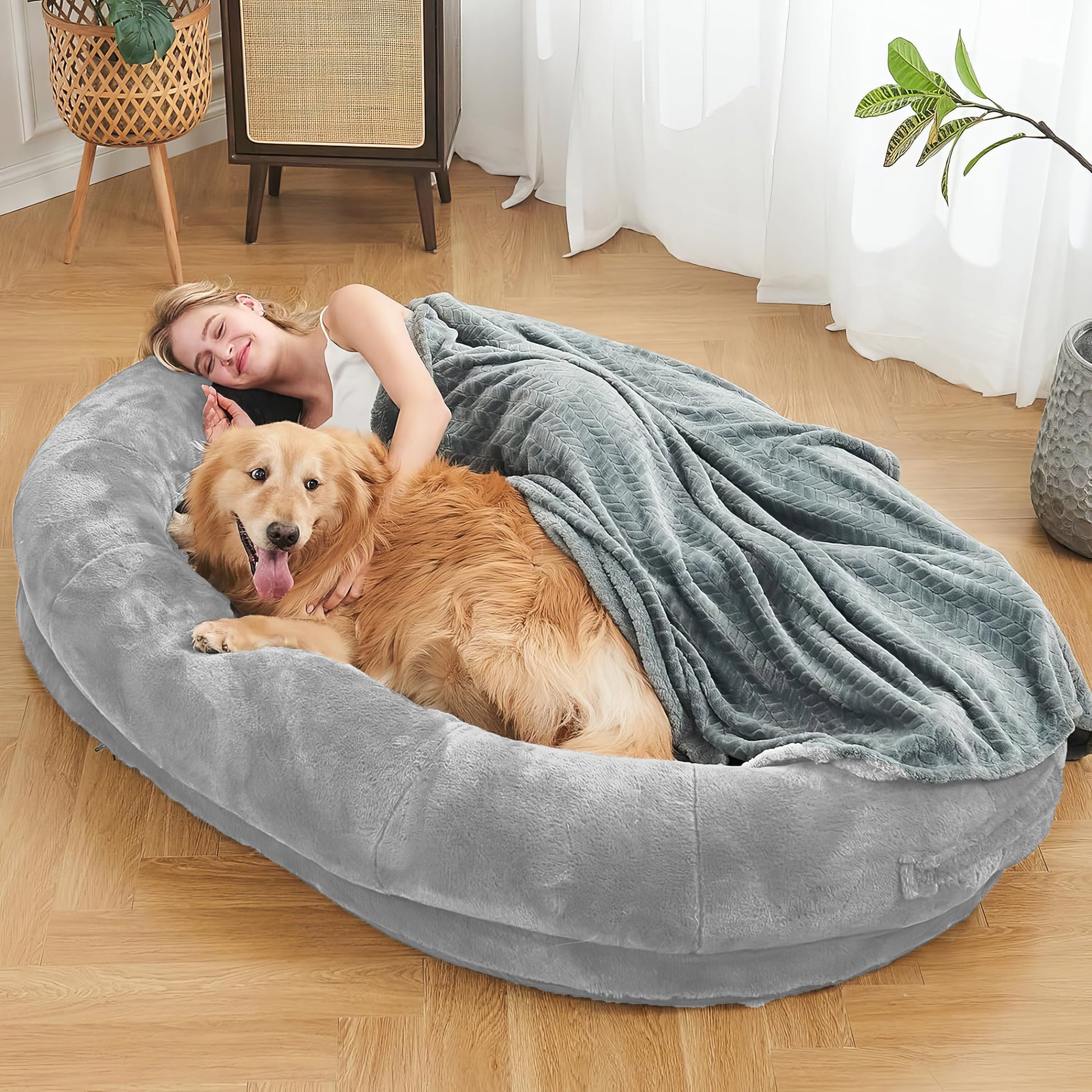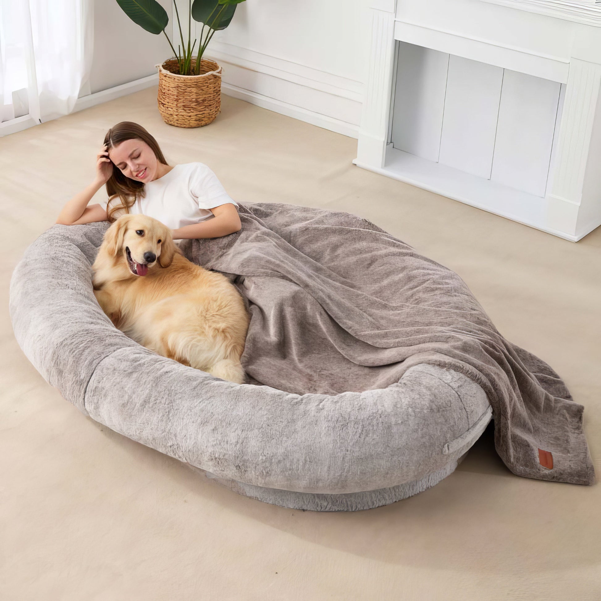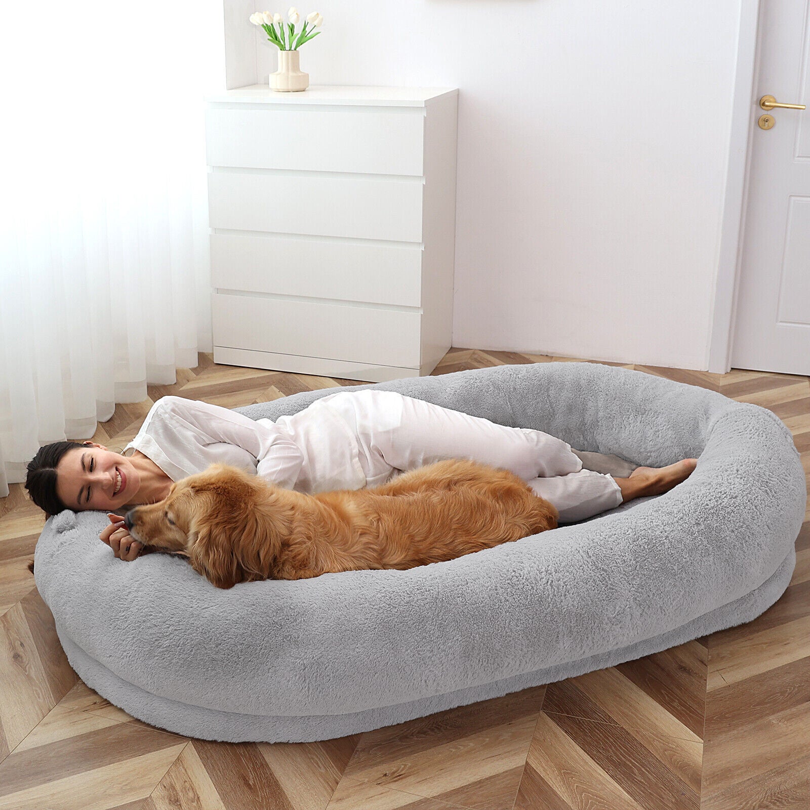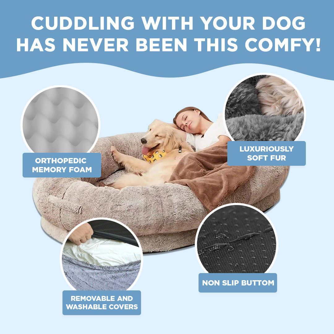 The Human Calming Dog Bed addresses these challenges with its meticulously crafted design. Featuring 360° plush pillow bolsters, an ultra-soft cover, and mattress-grade orthopedic and memory foam, it provides the ultimate spot for relaxation, naps, and cuddles with your pets, family, and friends.