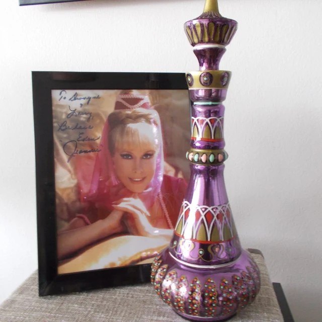 ♥️You know how it is when you've been cooped up in a bottle 2,000 years. You just want to have fun!lf you always wanted a Jeannie Bottle, you can now own one.The bottle Statuette stands 10.5 Inches tall, And is hand cast and hand painted like all of our props!