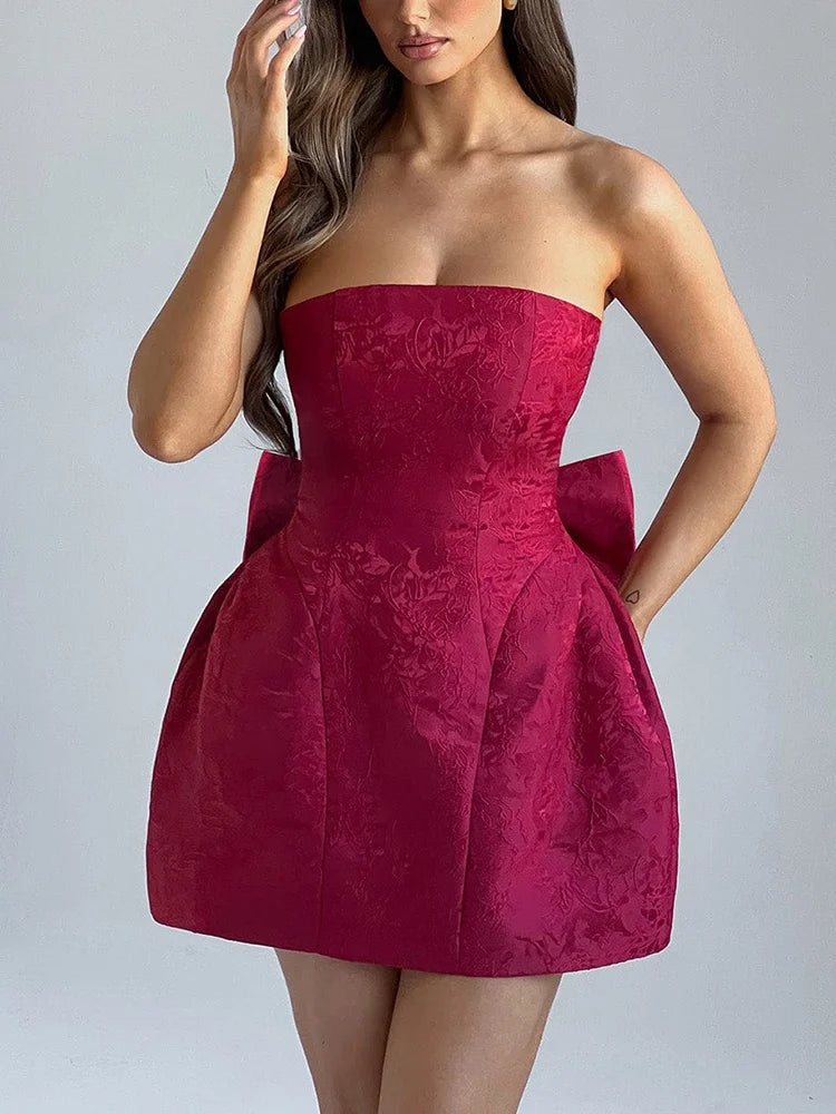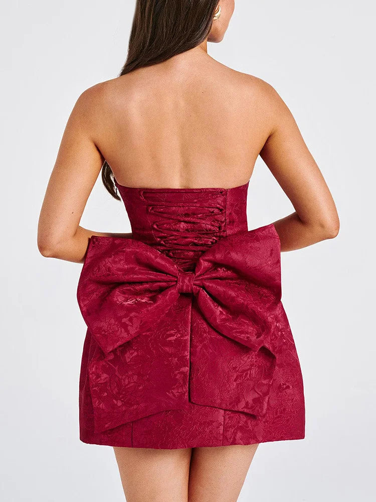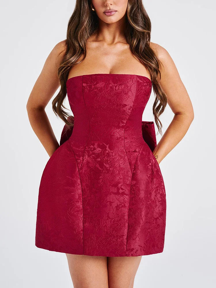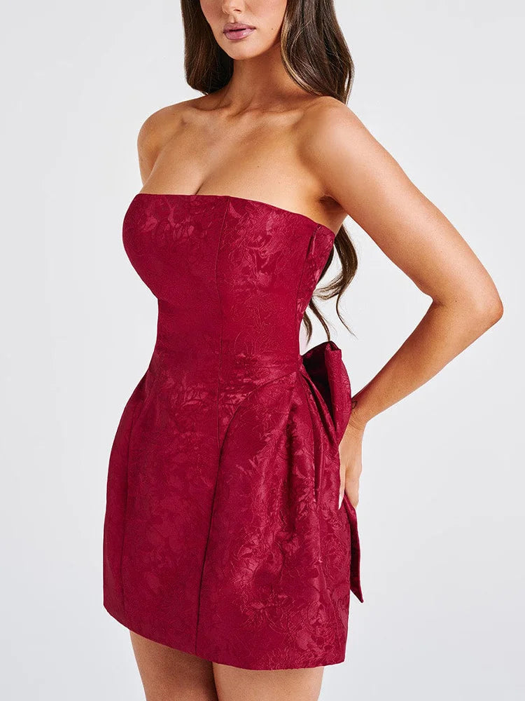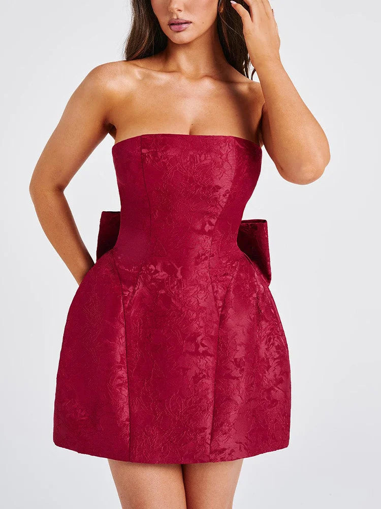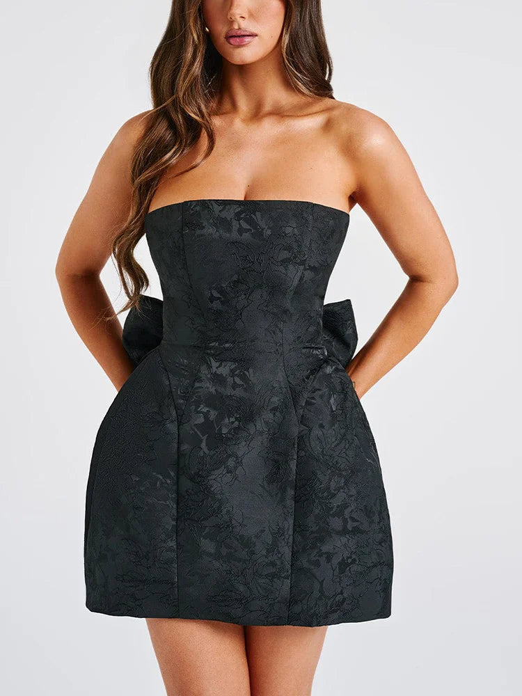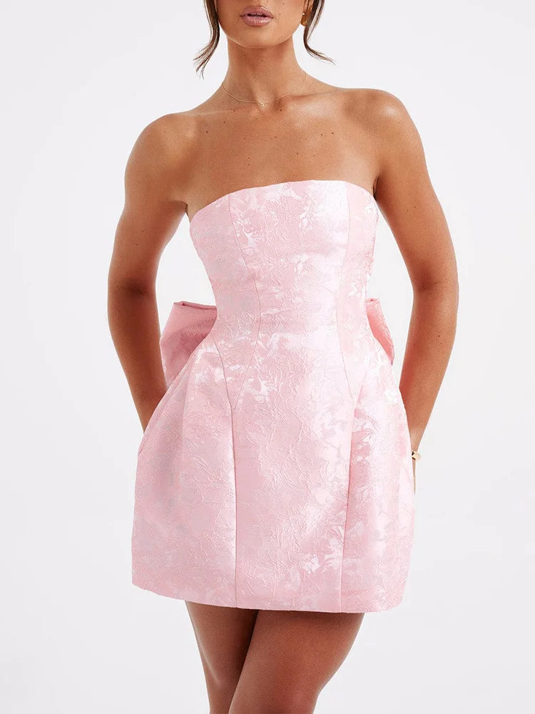 Jacquard Strapless Knot A-line Mini Dress