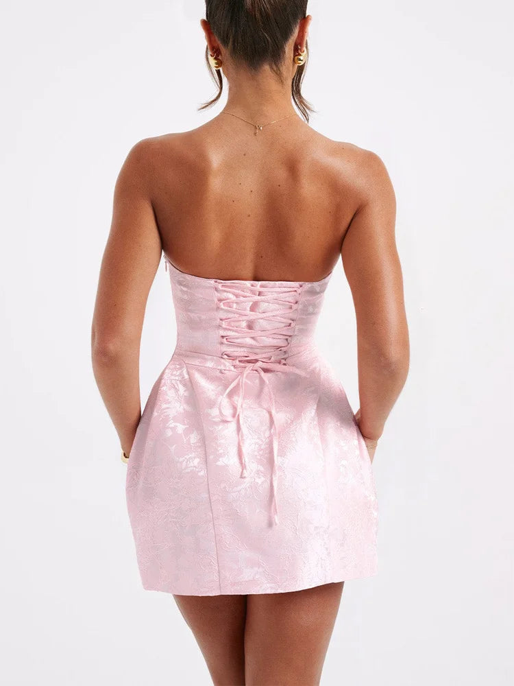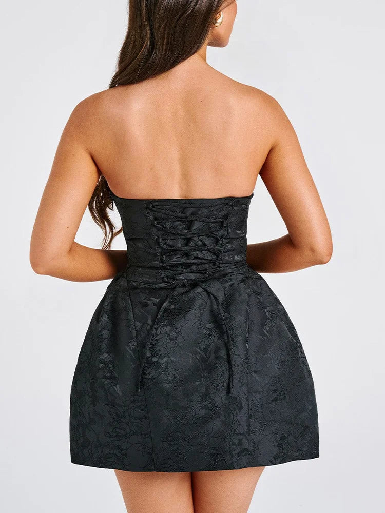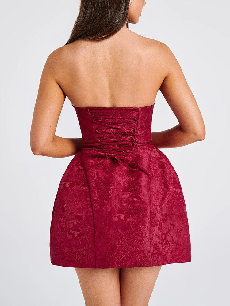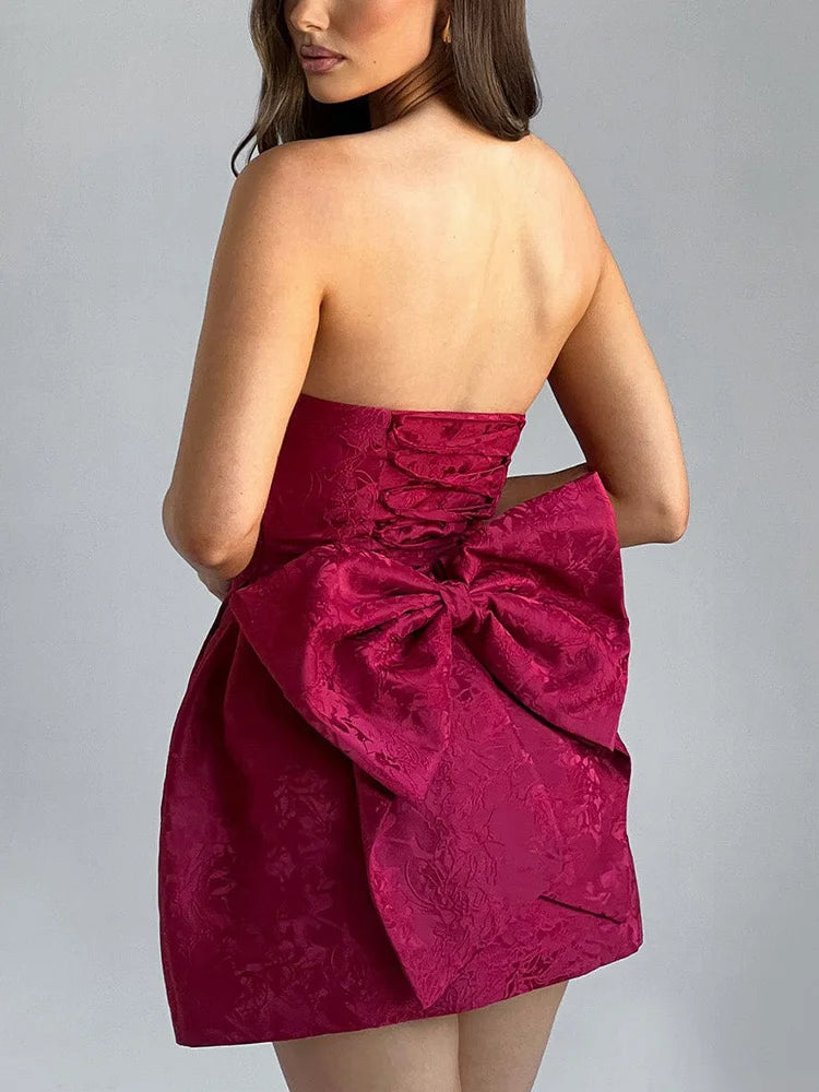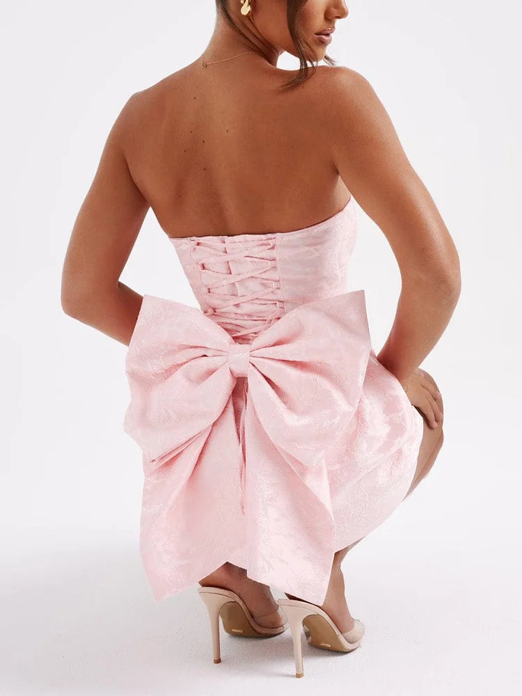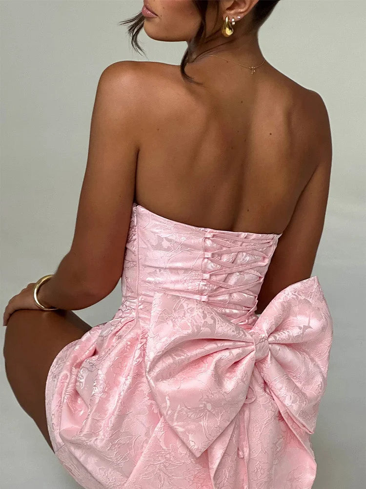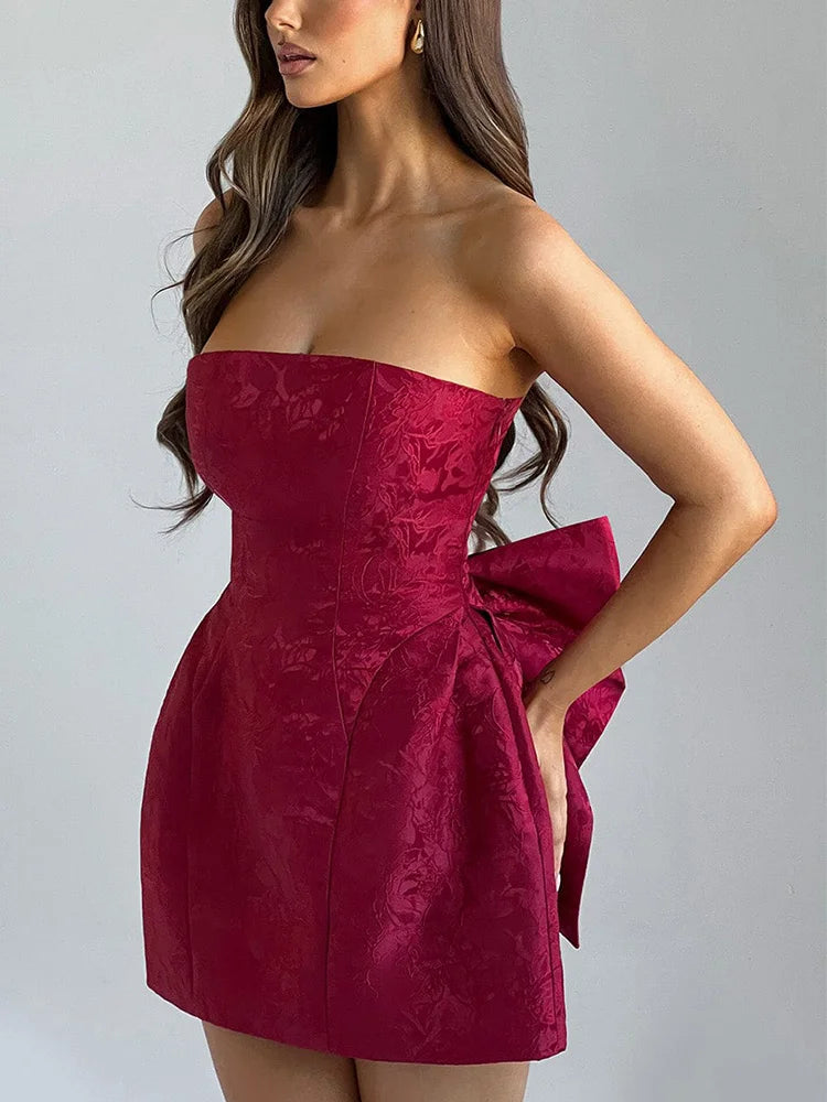 Jacquard Strapless Knot A-line Mini Dress