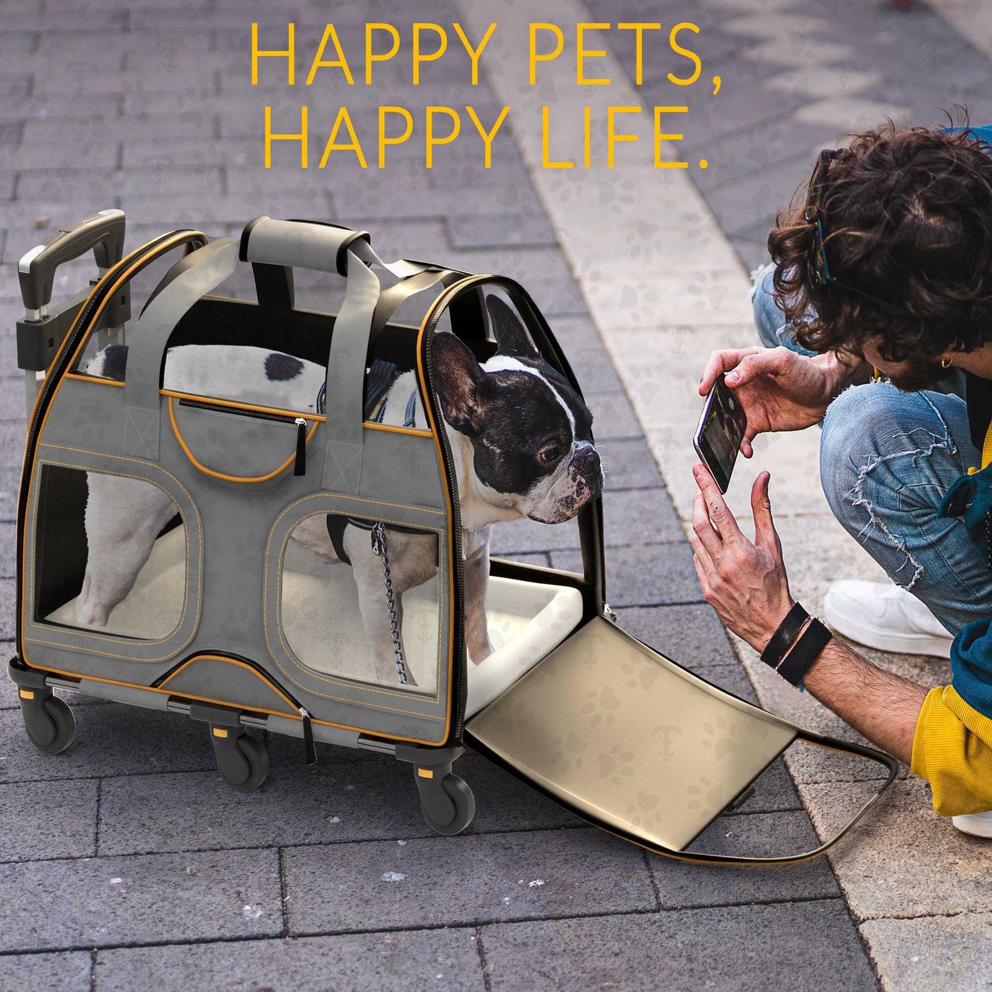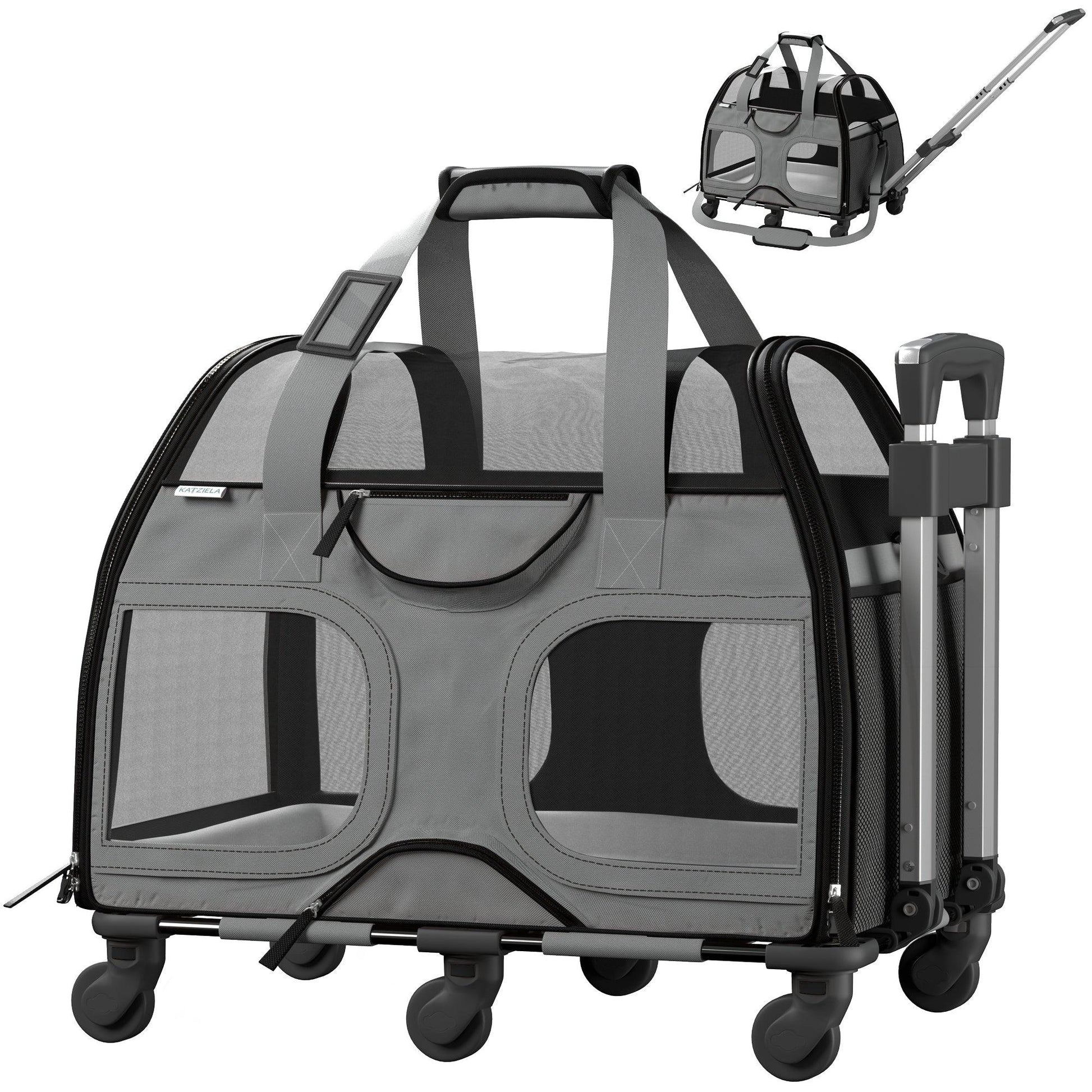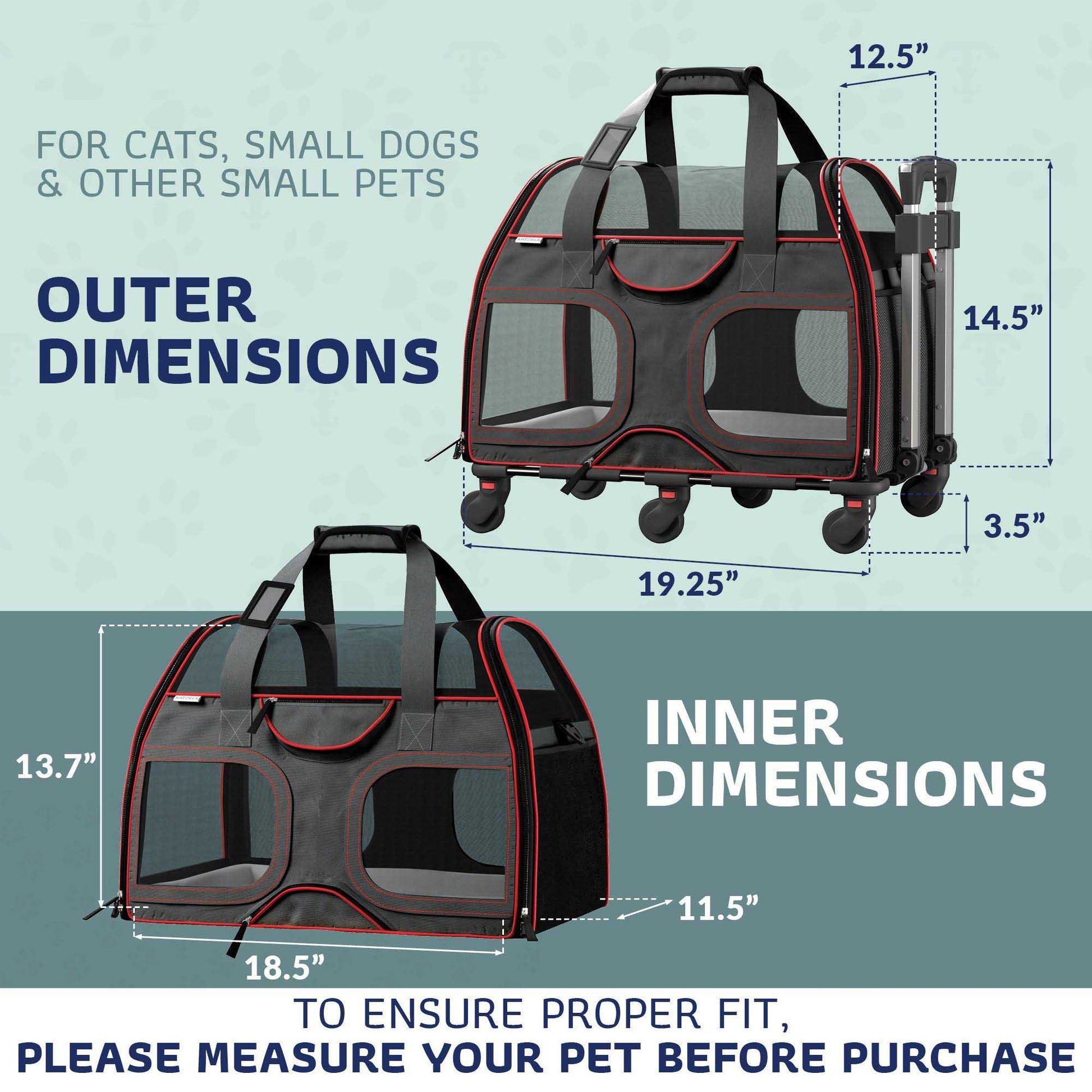 - 6 WHEEL DESIGN: Our airline-approved dog carrier and rolling cat carrier are equipped with a 6-wheel design and a double telescopic handle for effortless maneuverability. The handle remains easily accessible in an upright or 45-degree position, providing convenient control during travel.