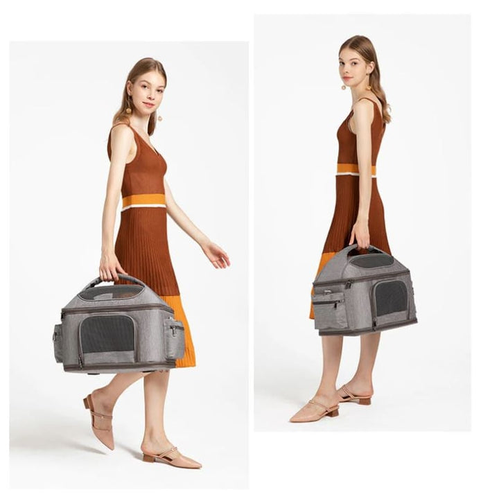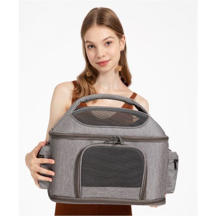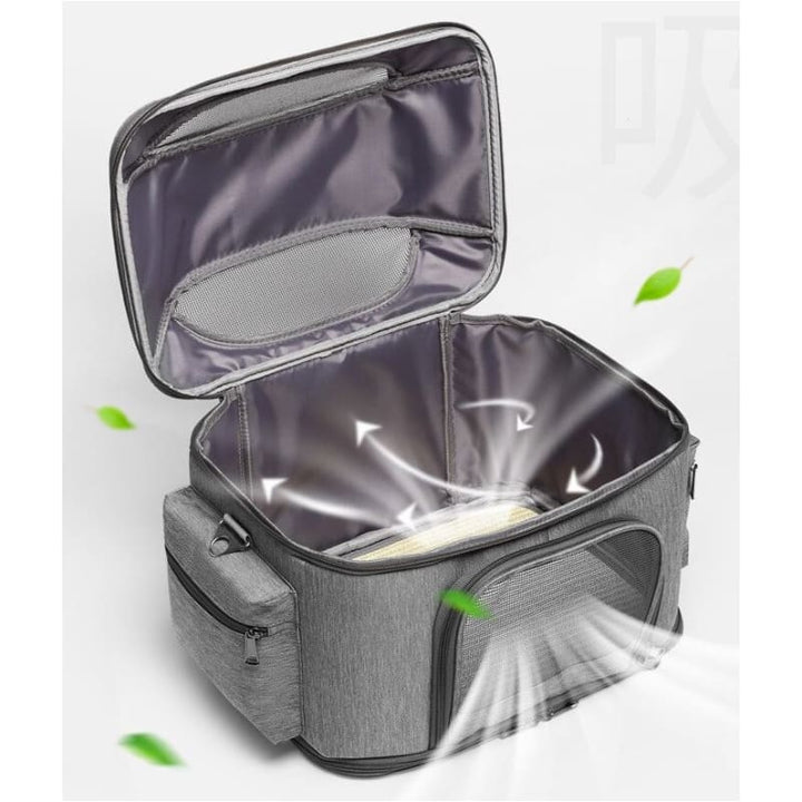 The Kirth Air Dog Carrier is a groundbreaking pet travel accessory that transforms the way you journey with your furry friend. Its innovative design not only facilitates in-cabin air travel but also enhances safety during car rides. The carrier's breathable and ventilated construction allows pets to comfortably observe their surroundings, effectively minimizing travel-related anxiety. Whether you're on the go or stationary, this carrier ensures optimal protection for your pet.