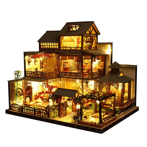 Are you looking for a realistic-looking dollhouse that you can give as a gift or enjoy the building in your spare time? Our DIY miniature wooden dollhouse features a detailed Asian interior design combined with bright LED lights to make the big dollhouse look very realistic.