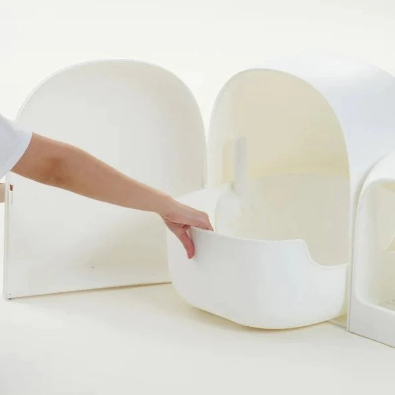 Introducing the latest and most stylish addition to the MS brand - the Modern & Compact Fully Enclosed Cat Litter Box. This Golden Pin Design Award winner meets all the requirements of modern pet owners - stylish, hidden, odor-free, leak-proof, and minimizes litter-tracking.