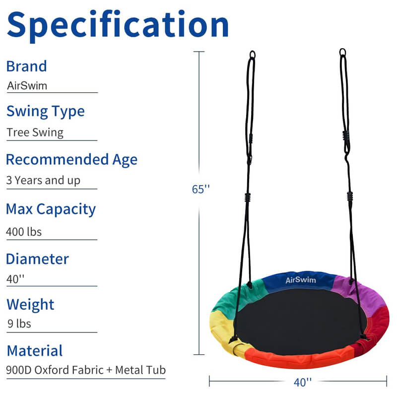 Description: Enjoy swinging with our Nest Round Swing. Spacious, durable, and easy to set up. Perfect for backyard fun!