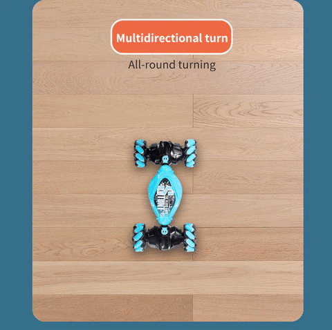 • More Fun Function: This 1:16 scale remote control car except basic function moving forward/backward, turn left/right. Special stunt features is including one-key transform, side drifting, 360° rotation, 2 sides driving, one-key to twist, one-key demonstrate, four-wheel drive climbing stunt car special effects toys. This sensor rc car is very cool for boys 6-12 years old. This is the best stunt car even meet, he must be the coolest boy in their friends.
