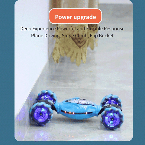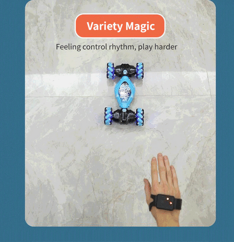 • Double Ways Control Modes: Our rc stunt car is upgraded with 2 control ways: gravity sensor watch control and remote controller. You just need to wear a gesture-sensing watch and give a gesture, and the remote control car will act accordingly. Or you can easy to control remote controller with 2.4ghz transmitter strength, that is sensitive and responsive, you can be maneuvered even from a far distance.(You can not control the car toy with two way at the same time.)