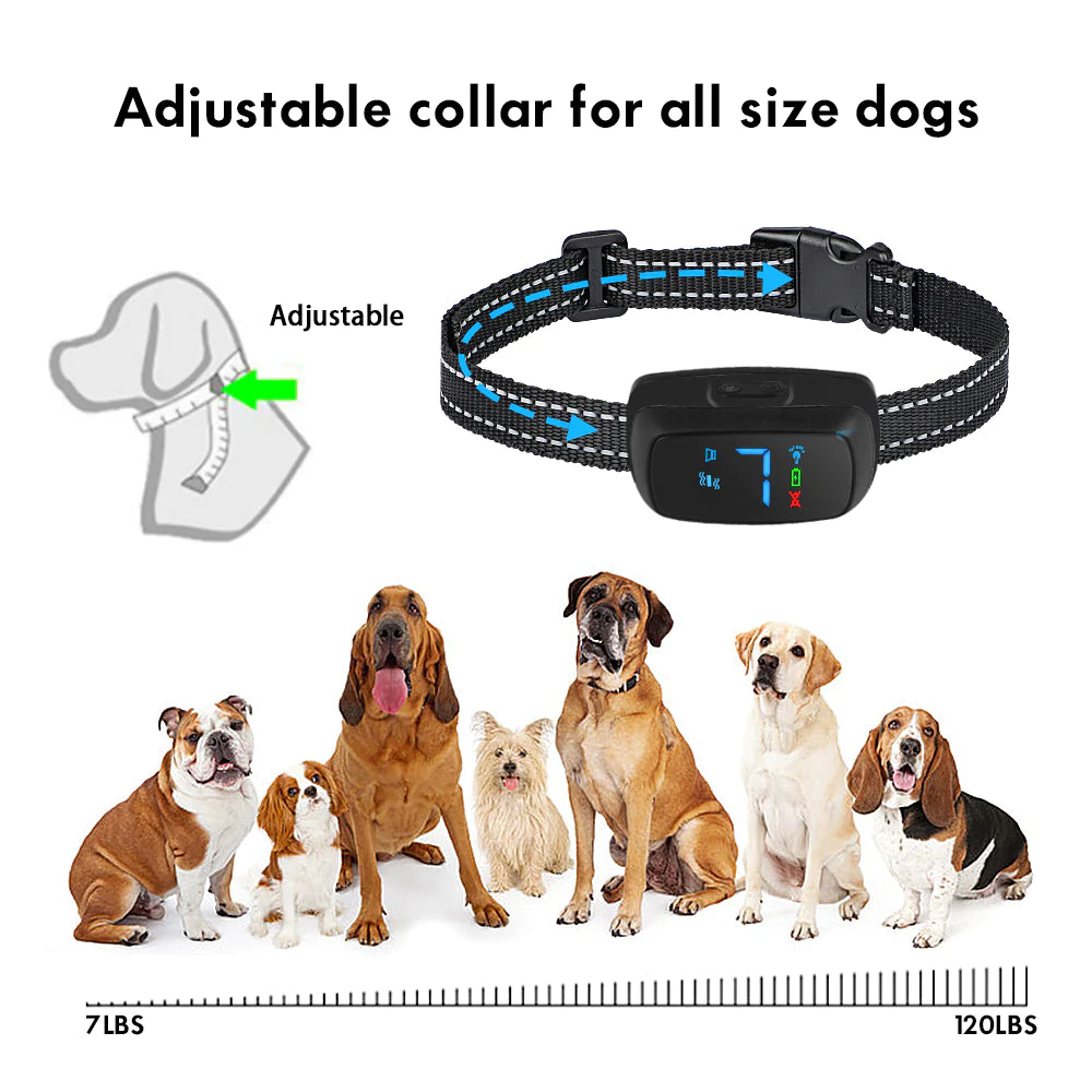 No Shock Rechargeable Water Resistant LED Bark Control Collar, Sound & Vibration Only, For 7-120lb Dogs, Neck Size 7in to 25in