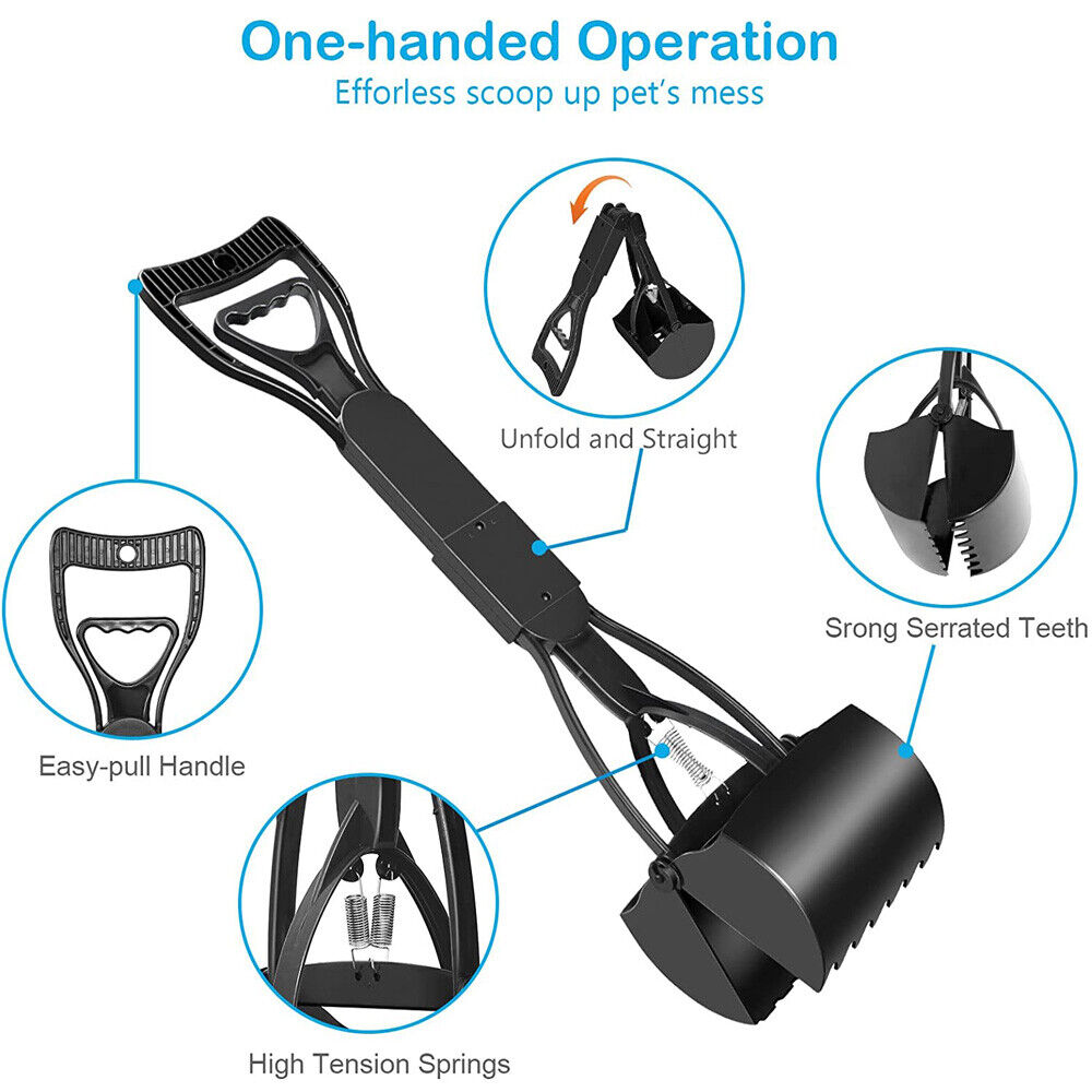 - 【CONVENIENT】60 CM long handle pooper scooper without ever having to kneel or bend down.