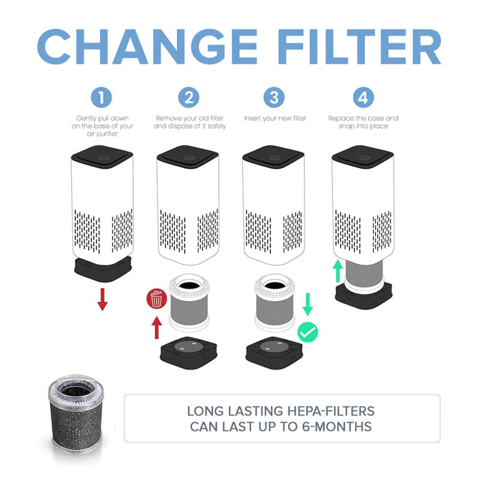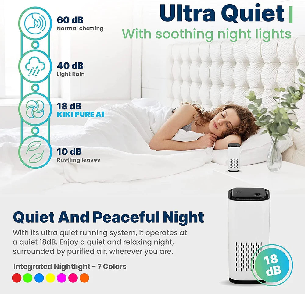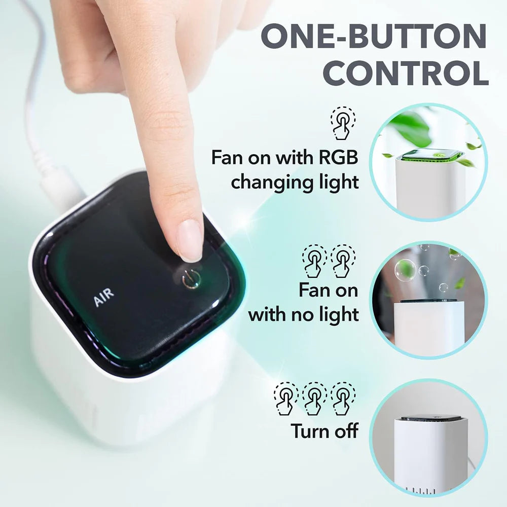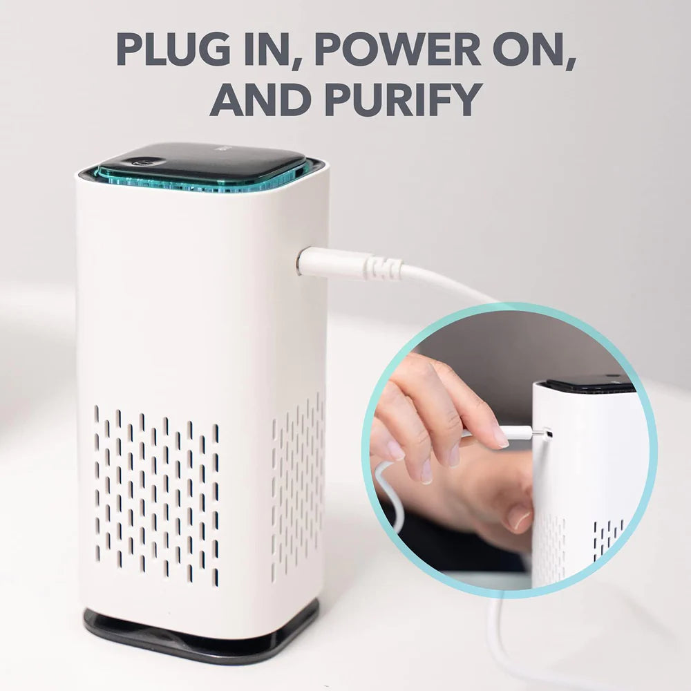 Its small design allows you to take the purifying power with you wherever you are – be it in your bedroom, car, office, or during your travels.