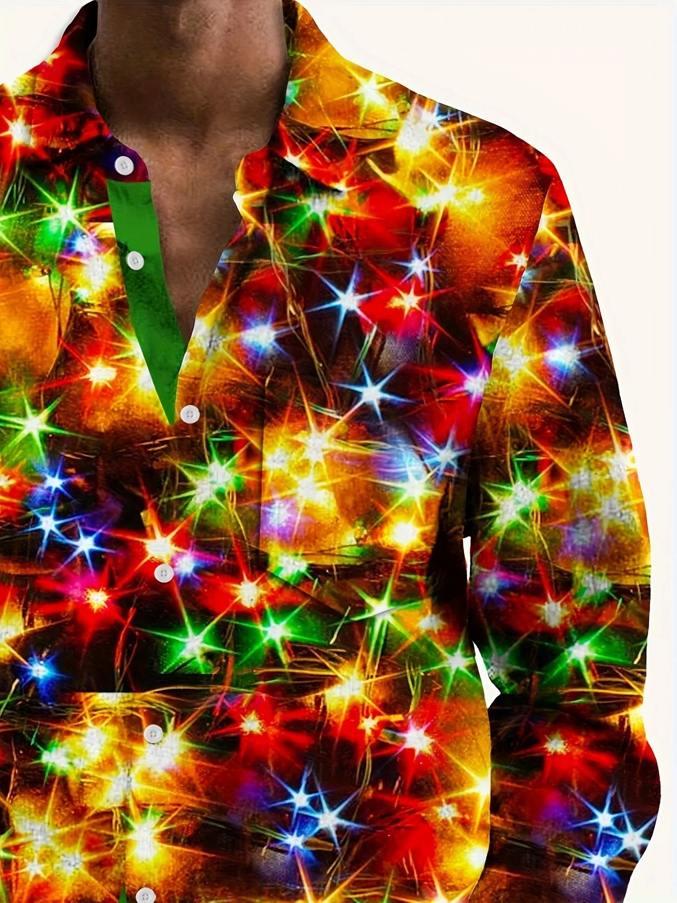 Christmas Gold Neon Men's Long Sleeve Shirts Stretch Plus Size Drama Costume Button Shirts