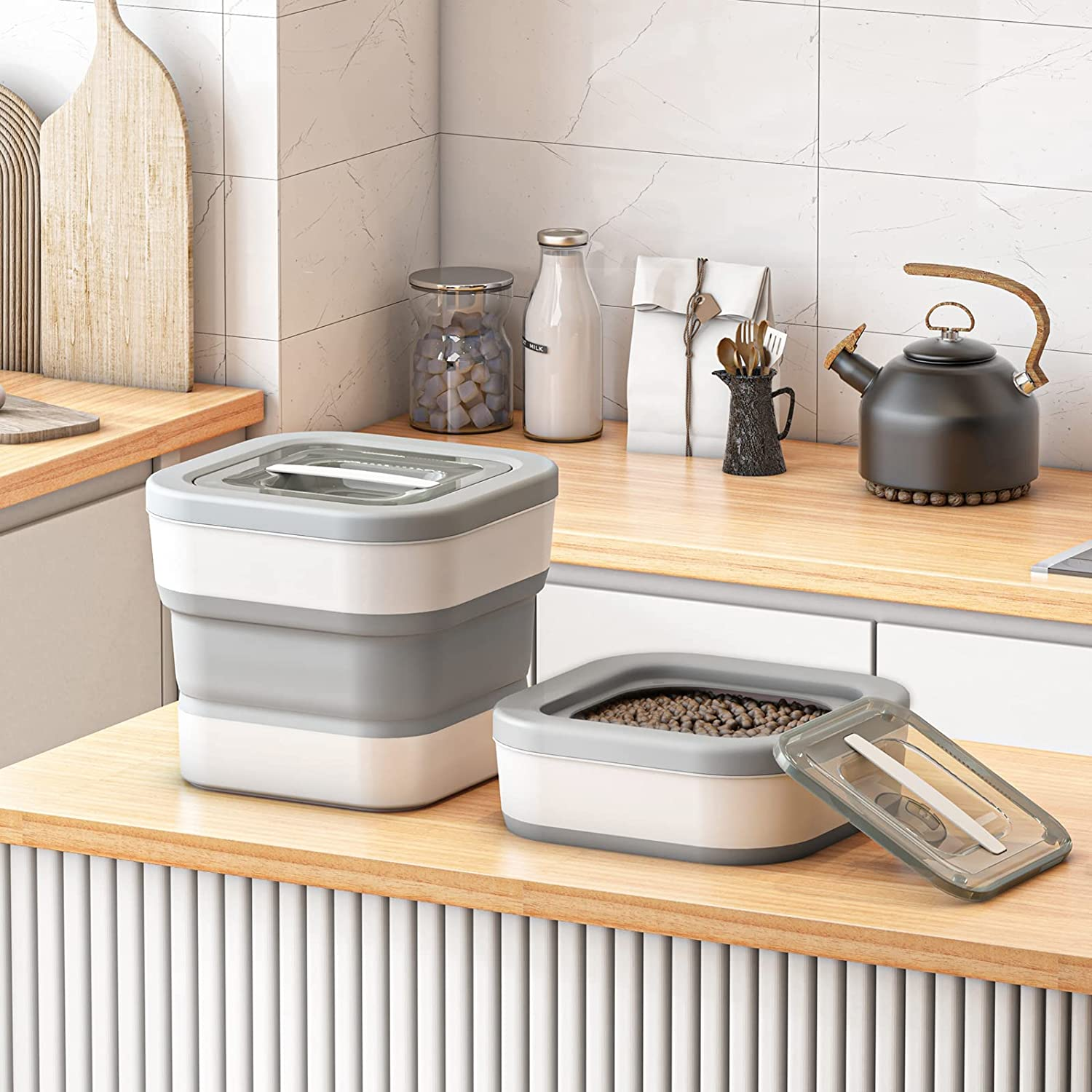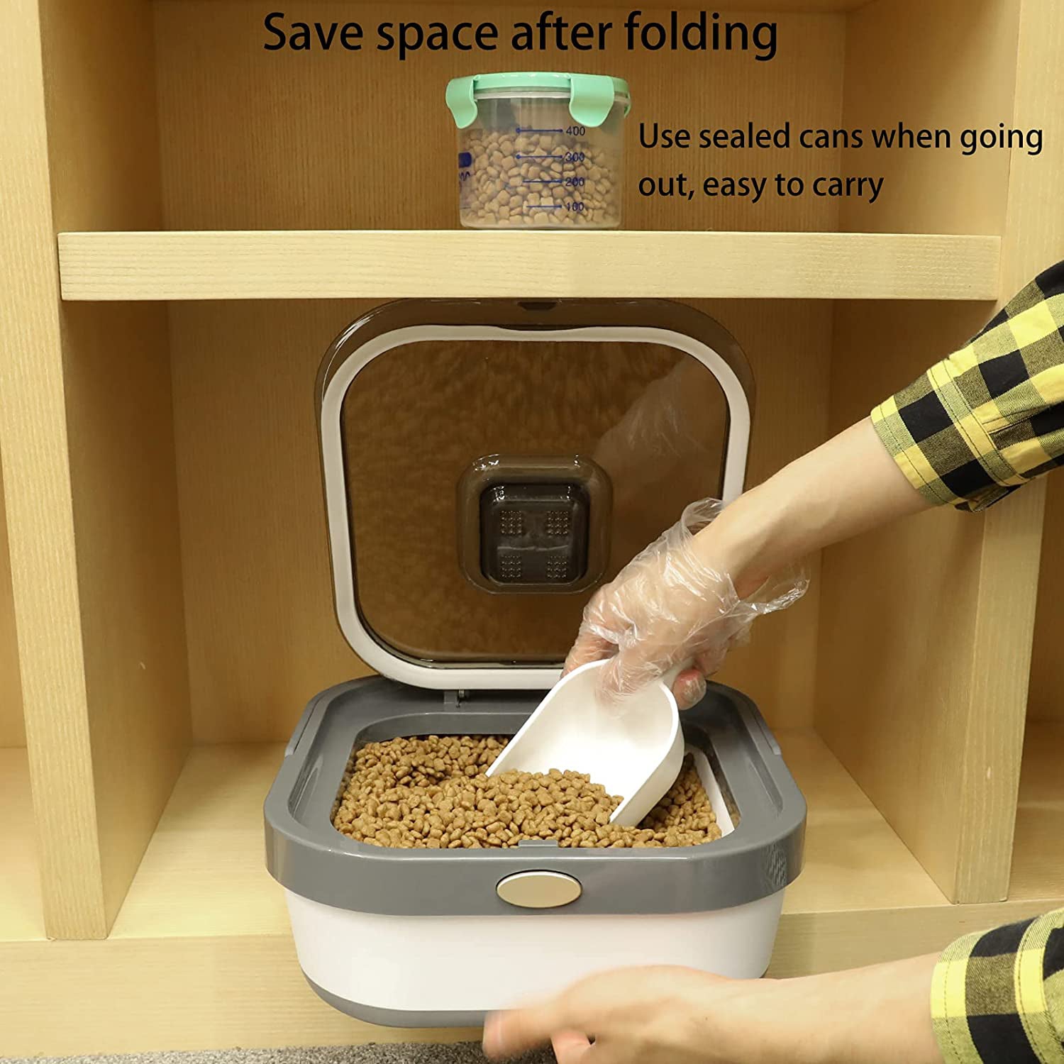 Efficiently Organize and Preserve Your Dog's Food with the Collapsible Dog Food Storage Container - A Secure and Stylish Solution!