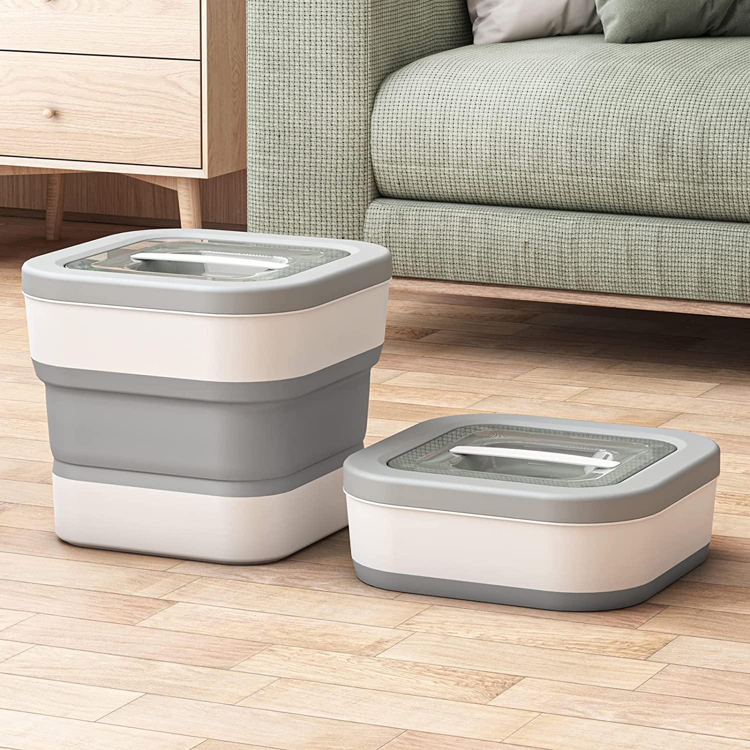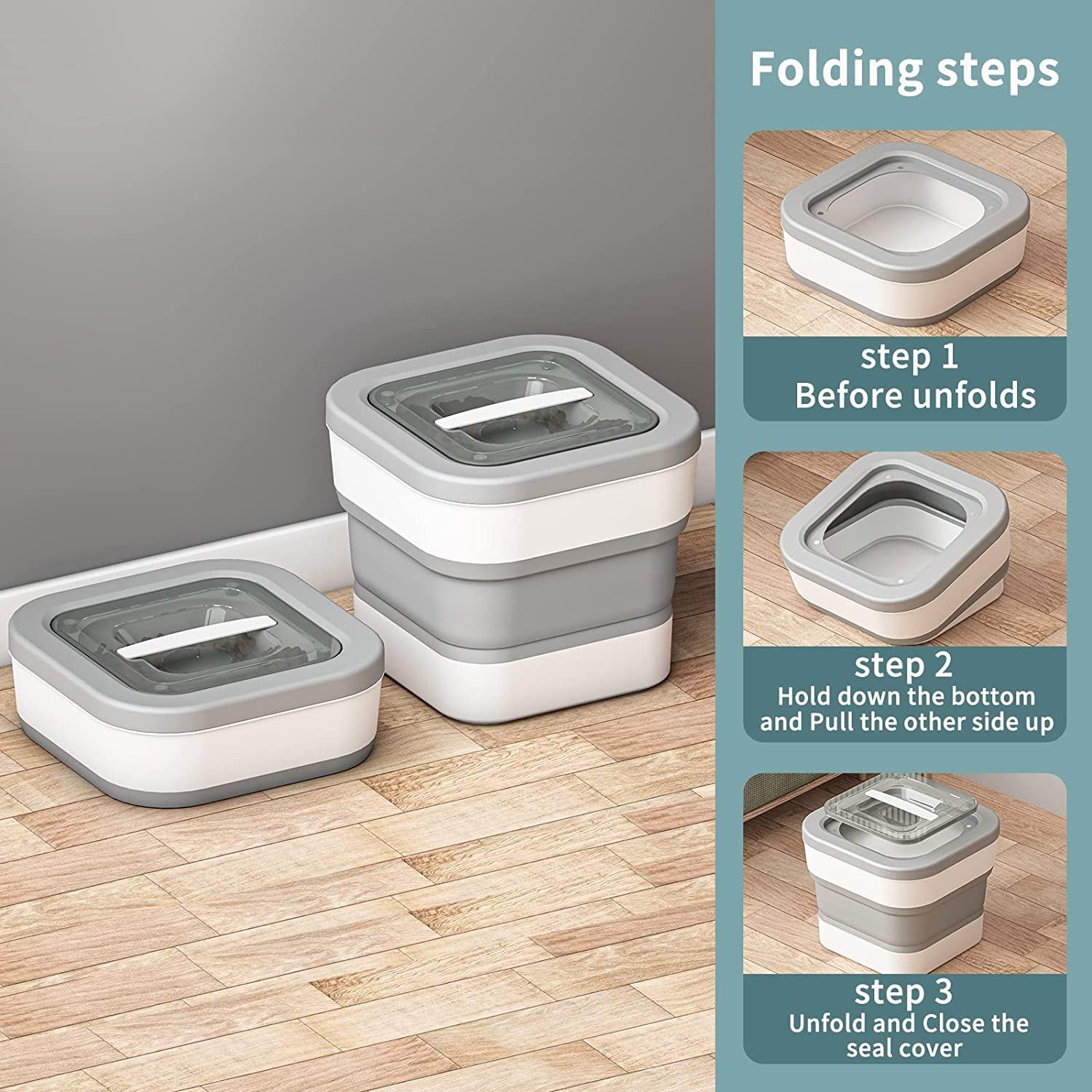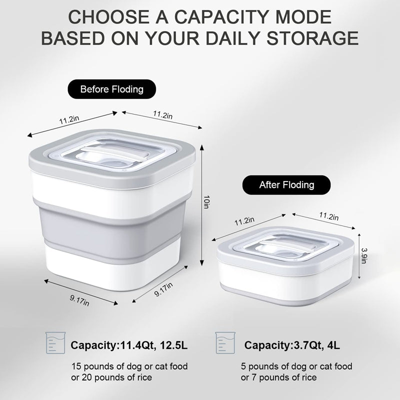 This container is the epitome of versatility! With its collapsible design, you can effortlessly adjust the capacity to meet your specific storage needs. Unfolded, it can hold up to a whopping 15 lbs of pet food or 20 lbs of rice, while folded, it can accommodate 5 lbs of pet food or 7 lbs of rice. Say goodbye to cluttered cabinets and hello to space-saving convenience!
