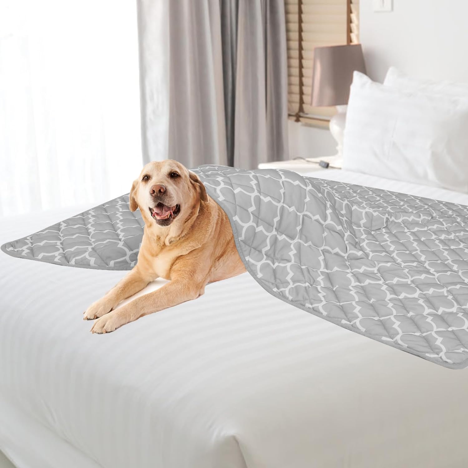 The pet bed mat is made of cool feeling fabric on both sides, soft, breathable and cool to the touch. The double-sided design lasts longer and the lucky grass pattern is classic and fun. Material is safe and durable, no need to worry about pet chewing and scratching.