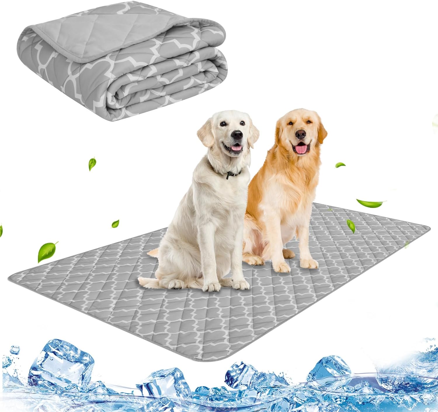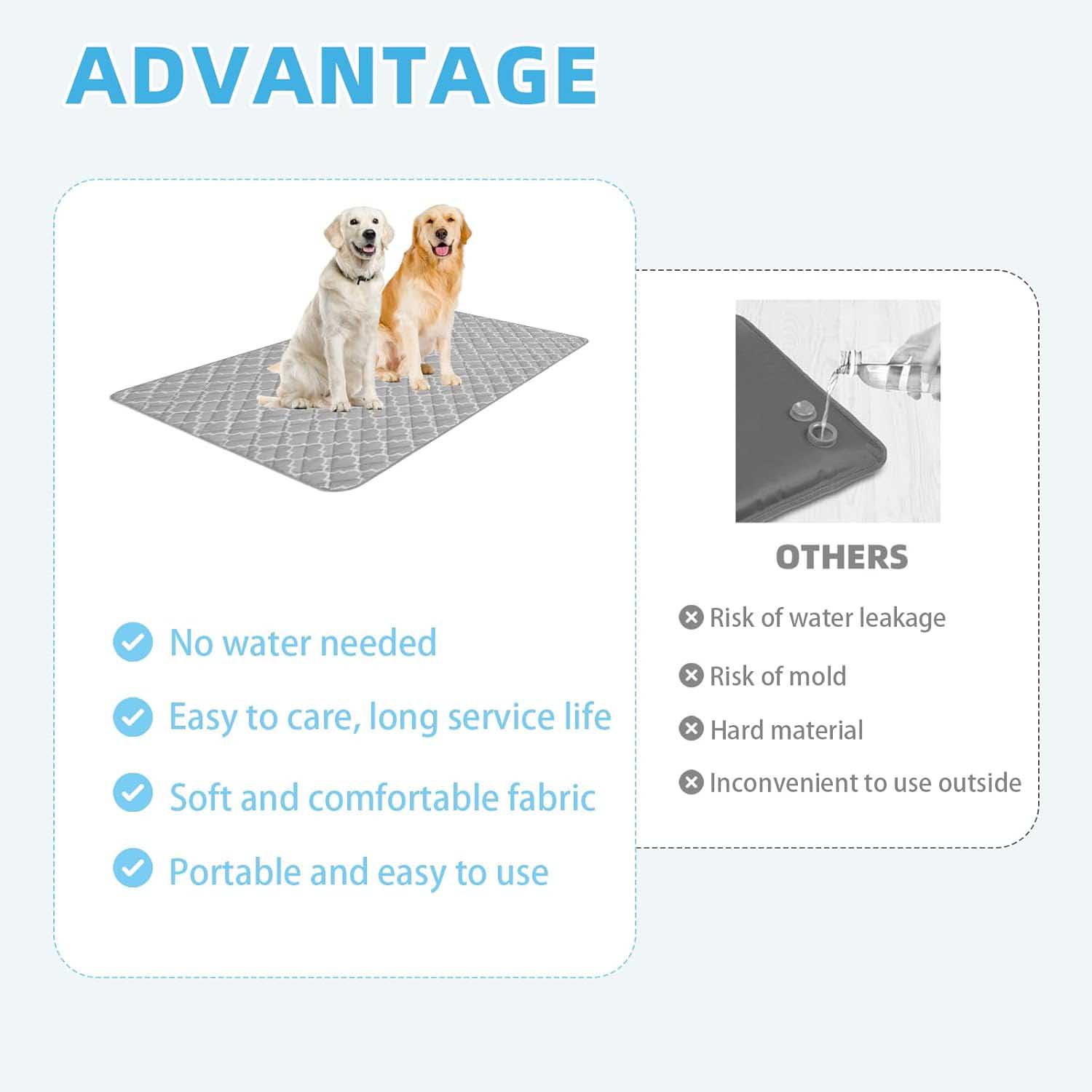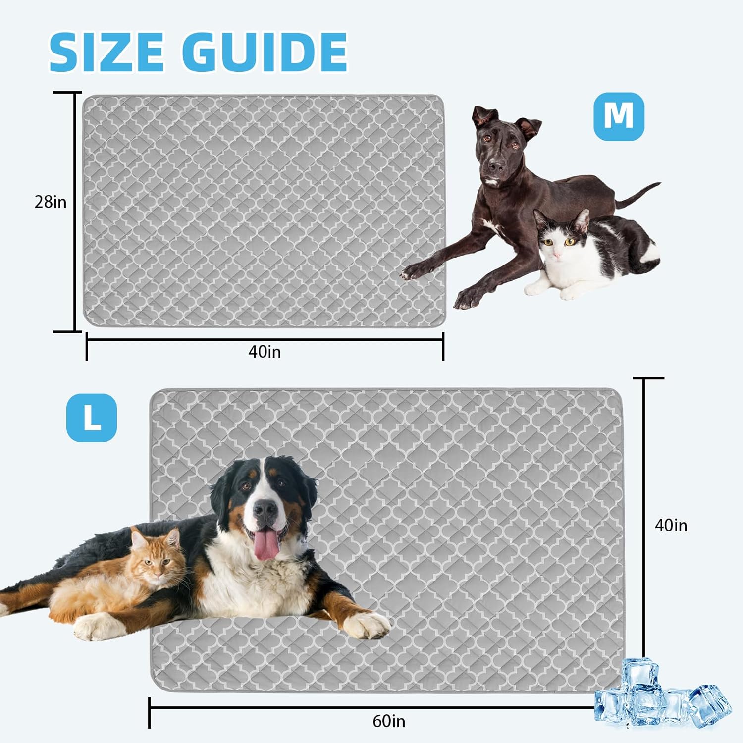 Our cooling mat is double sided and available in two sizes. M:28*40in, L:40*60in, suitable for small, medium and large dogs. The mat is fast cooling, effective, it is a good summer gift for dogs. keep your pet cool and comfortable all day long.
