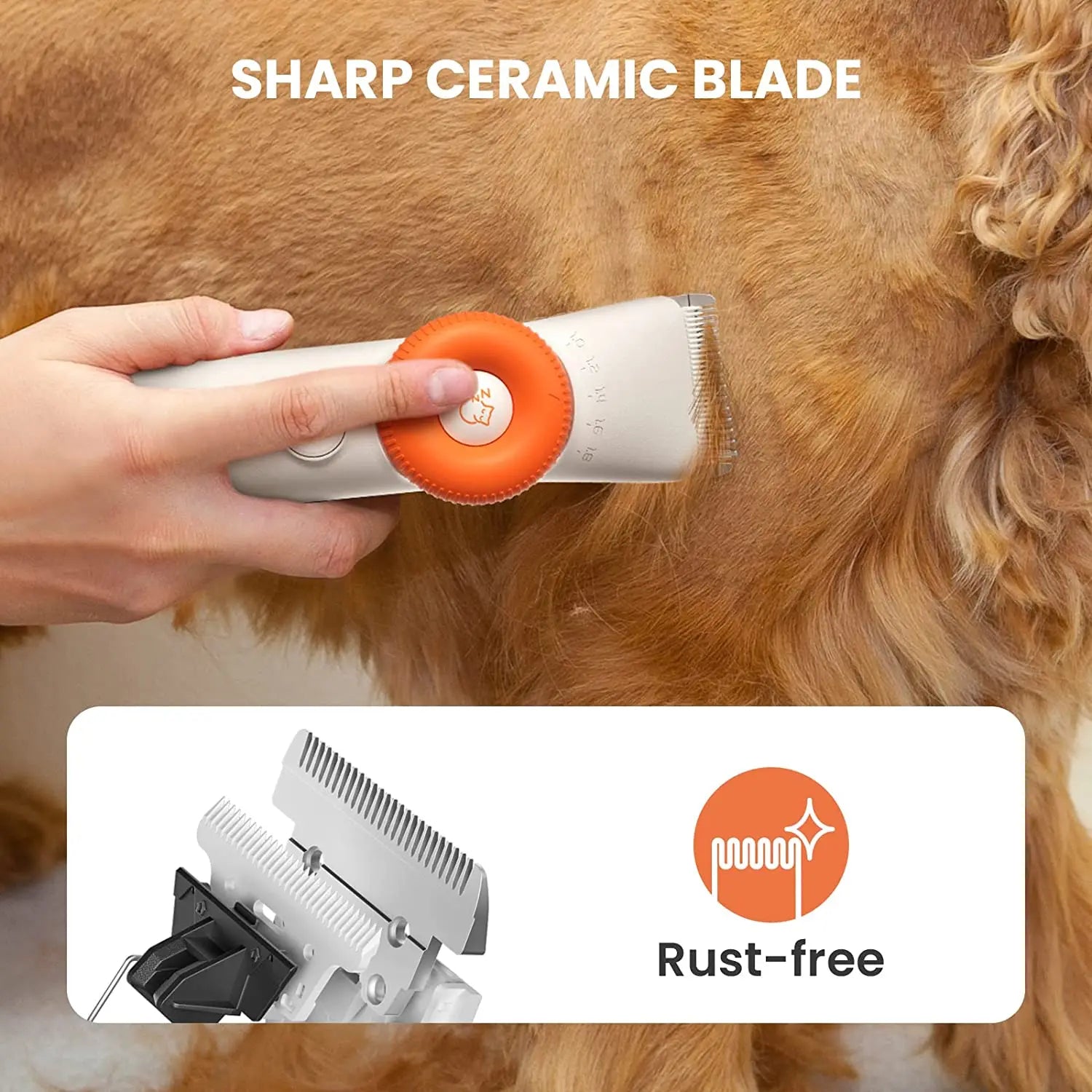 Experience grooming excellence with Doglory dog clippers, equipped with fine ceramic and premium stainless steel blades. These blades ensure a pain-free grooming experience for your pet by preventing hair pulling and providing the utmost comfort for their skin during the grooming process.